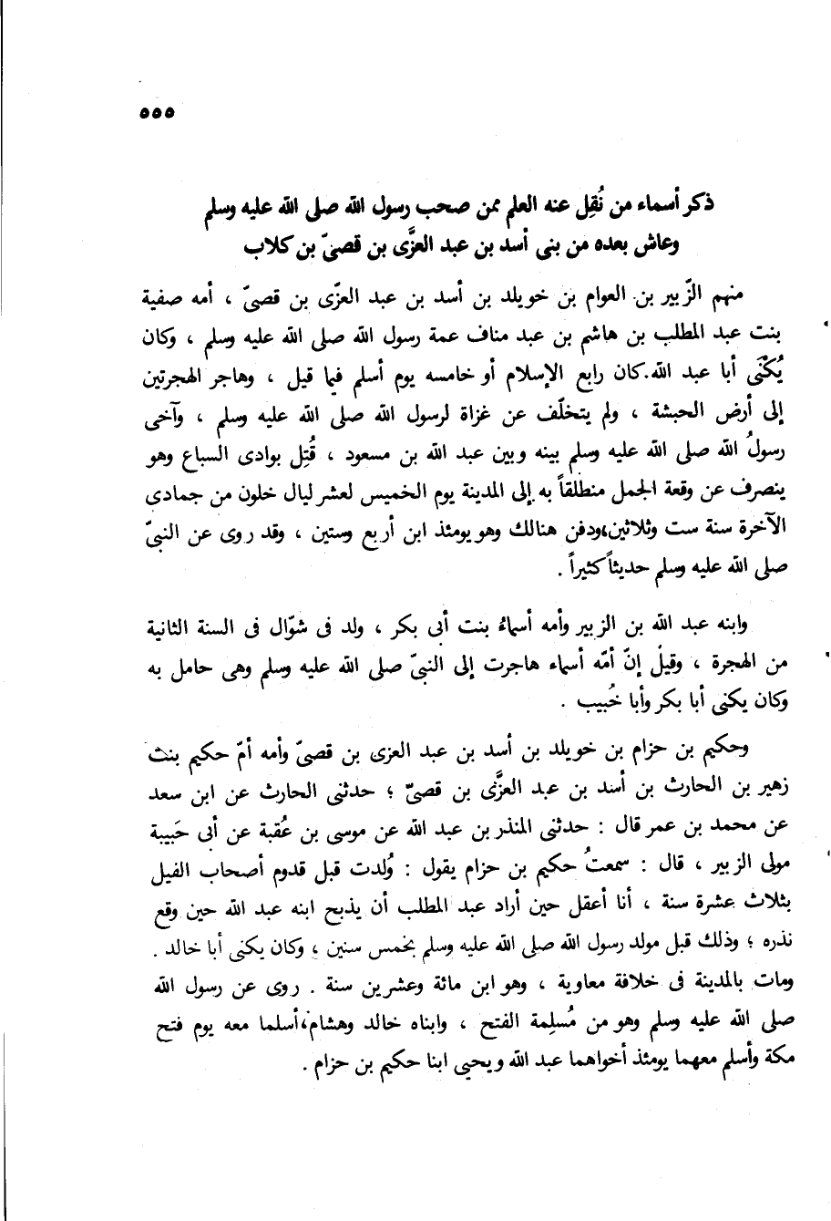 ذكر أسماء من نقل عنه العلم ممن صحب رسول الله صلى الله عليه وسلم وعاش بعده من بَنِي أَسَدِ بْنِ عَبْدِ الْعُزَّى بْنِ قُصَيٍّ بن كلاب