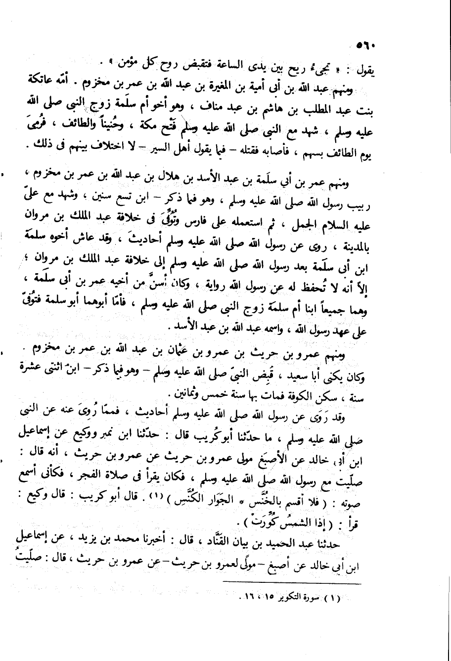 ومنهم عمرو بن حريث بن عمرو بن عثمان بْن عبد الله بْن عمر بْن مخزوم.