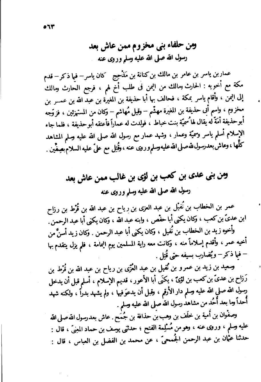 ومن بنى عدى بن كعب بن لؤي بن غالب ممن عاش بعد رسول الله ص وروى عنه