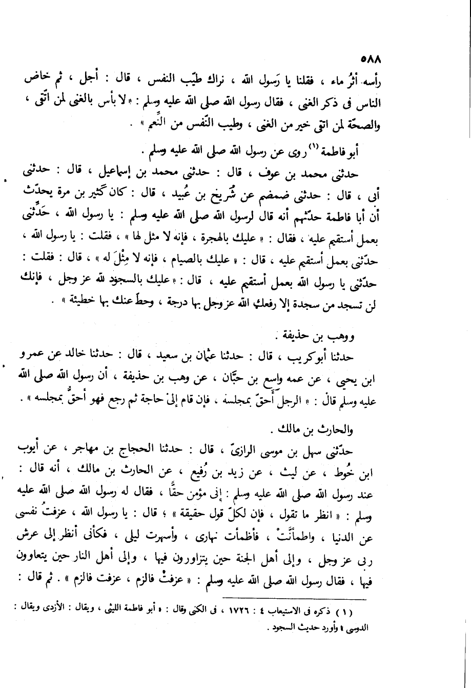 حدثنى سهل بن موسى الرازى، قال: حدثنا الحجاج بن مهاجر، عن أيوب ابن خوط، عن ليث، عن زيد بن رفيع، عن الحارث بن مالك، انه [قال: