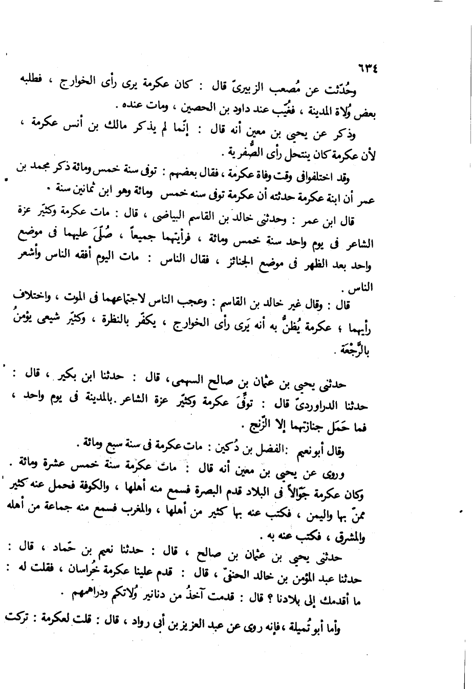 وروى عن يحيى بن معين انه قال: مات عكرمه سنه خمس عشره ومائه.