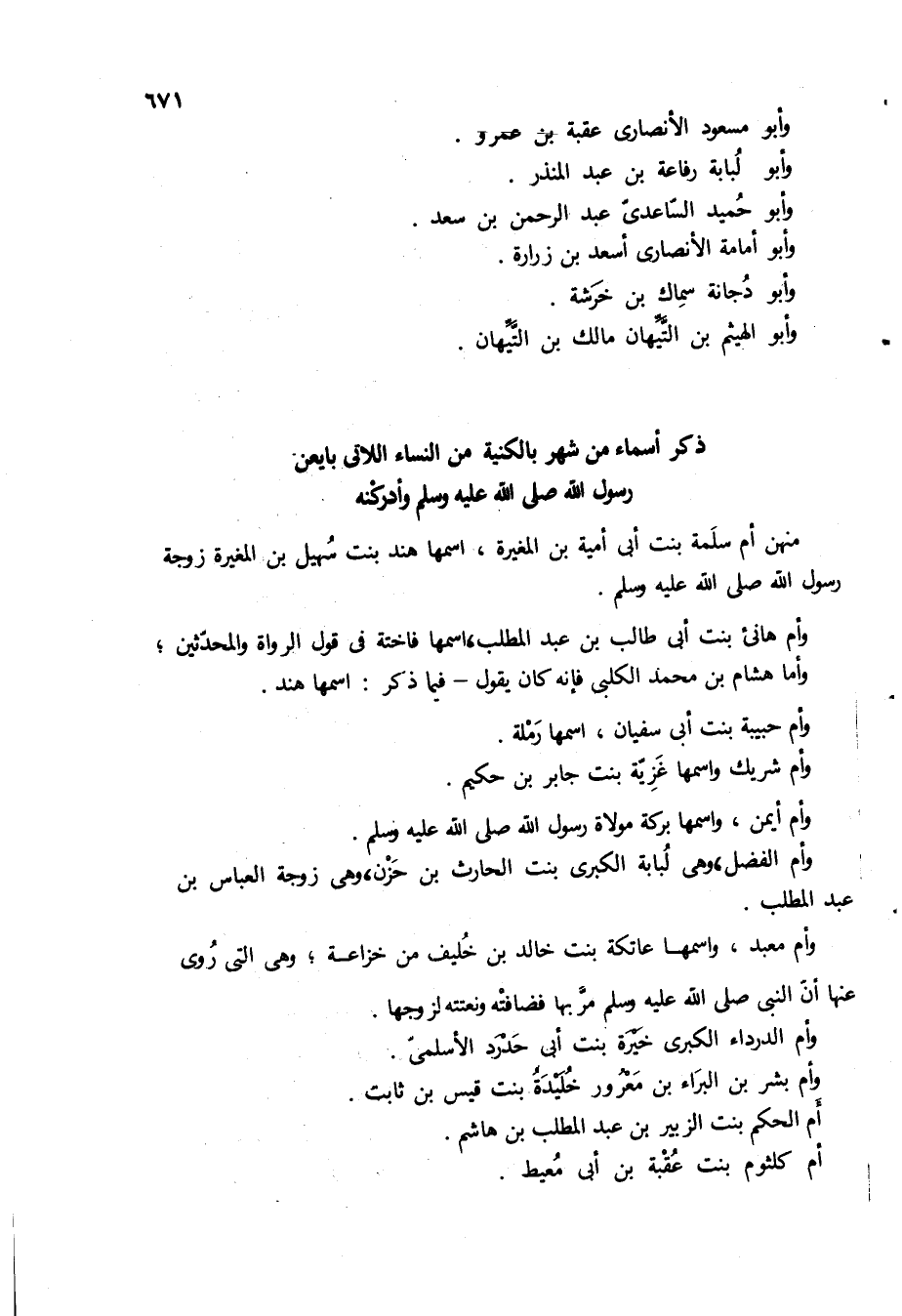 ذكر أسماء من شهر بالكنية من النساء اللاتي بايعن رسول الله ص وأدركنه