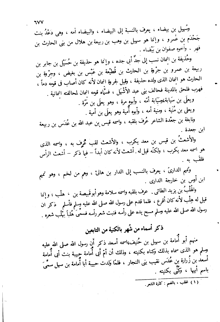 منهم ابو امامه بن سهيل بن حنيف، اسمه اسعد ذكر ان رسول الله ص هو الذى سماه بذلك وكناه بكنيته، وذلك ان أم ابى امامه حبيبه بنت ابى امامه اسعد بن زراره بن عدس نقيب بنى النجار، فلما ولدت حبيبه أبا امامه بن سهل سمى باسم أبيها، وكنى بكنيته.