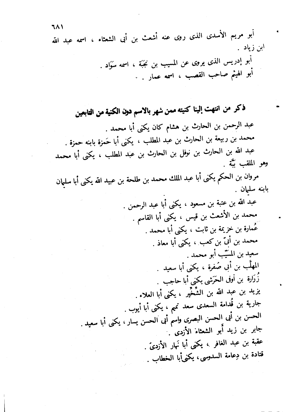 ذكر من انتهت إلينا كنيته ممن شهر بالاسم دون الكنية من التابعين