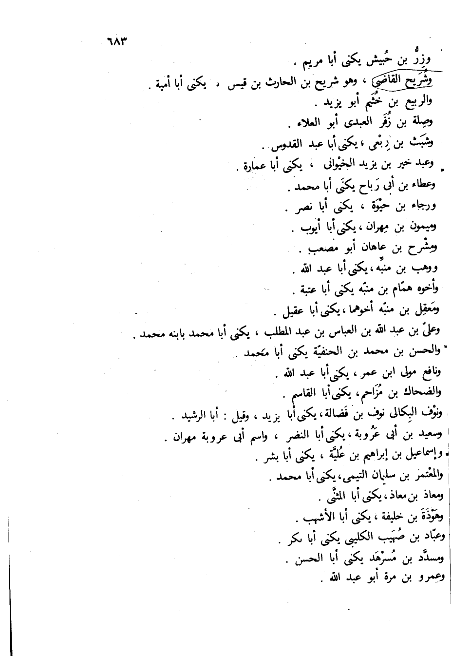 وشريح القاضى، وهو شريح بن الحارث بن قيس يكنى أبا اميه.