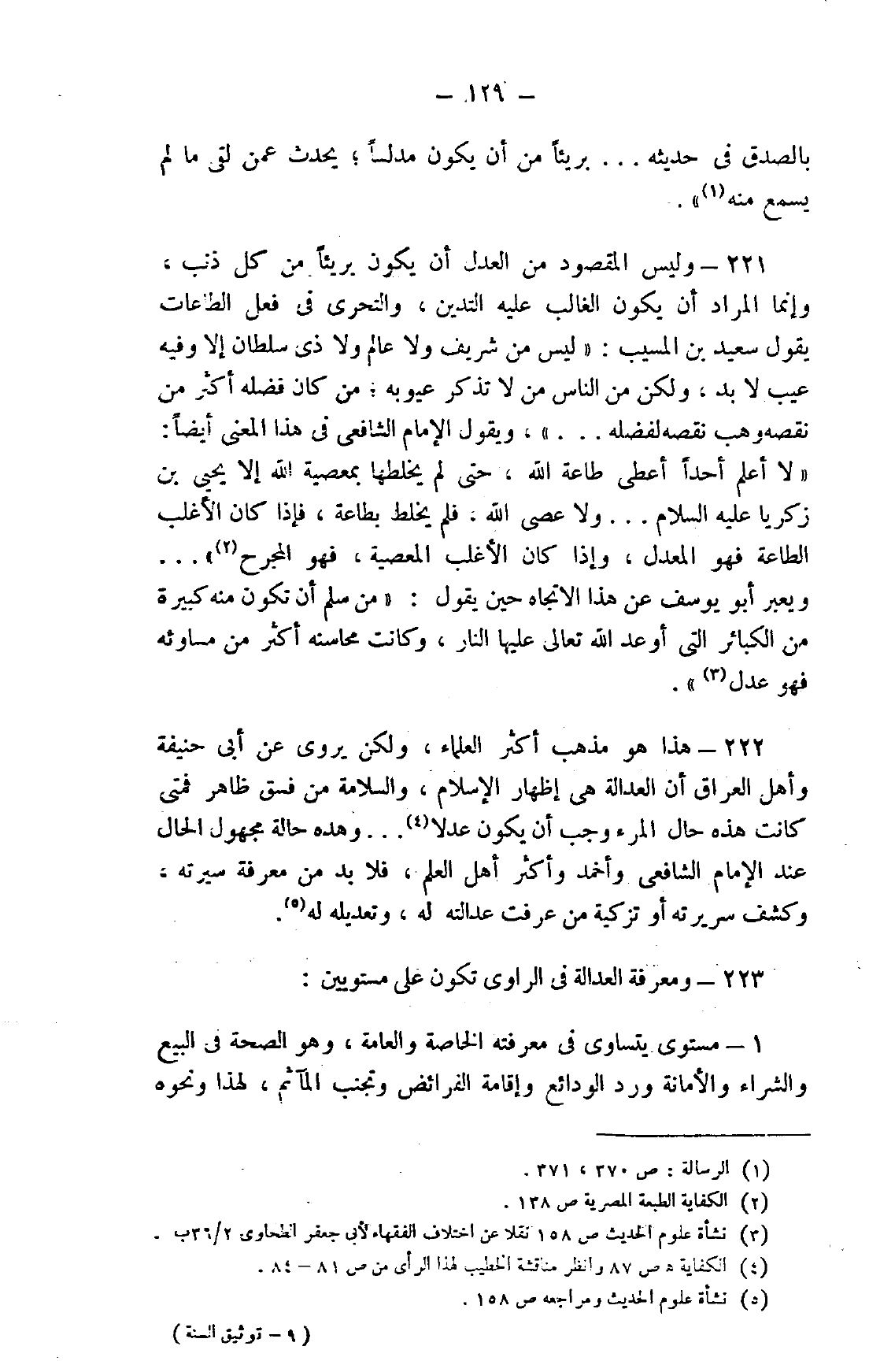 223- ومعرفة العدالة في الراوي تكون على مستويين: