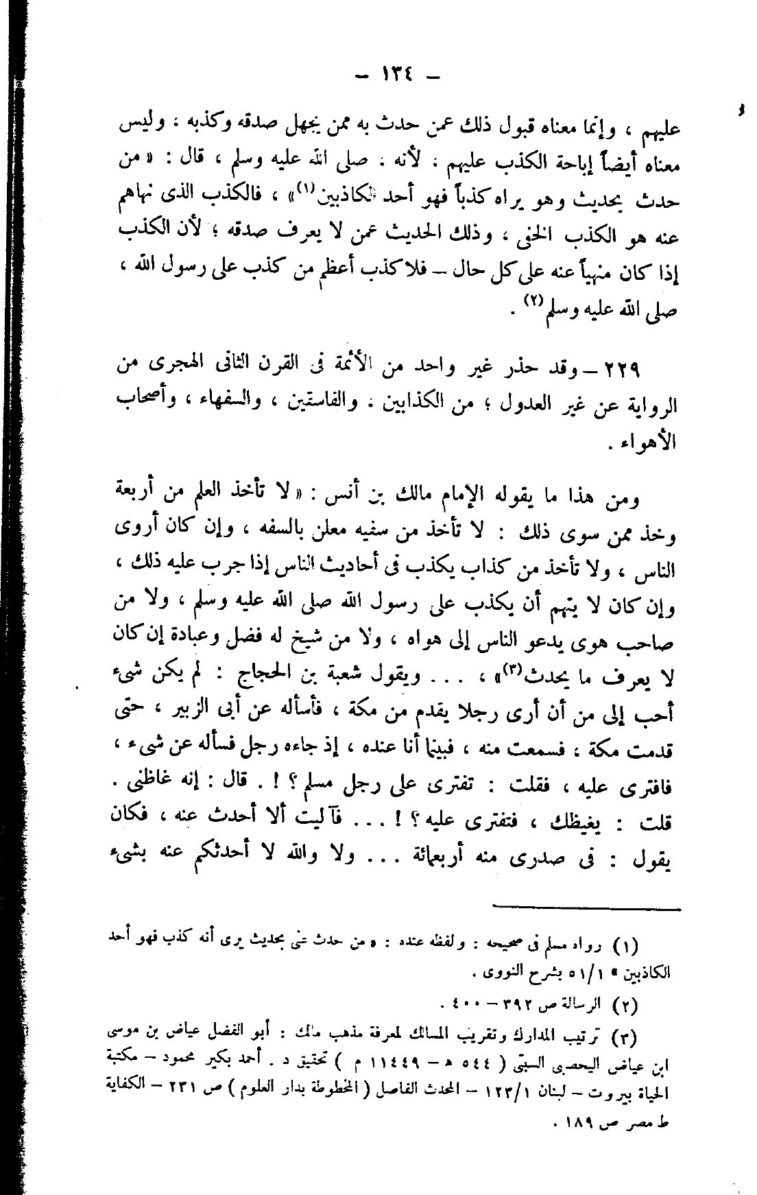 3 ترتيب المدارك وتقريب المسالك لمعرفة مذهب مالك: أبو الفضل عياض بن موسى ابن عياض اليحصبي السبتي "554 هـ - 11449م" تحقيق د. أحمد بكير محمود -مكتبة الحياة ببيروت- لبنان 1/ 123 - المحدث الفاصل "المخطوطة بدار العلوم" ص23- الكفاية ط مصر ص189.