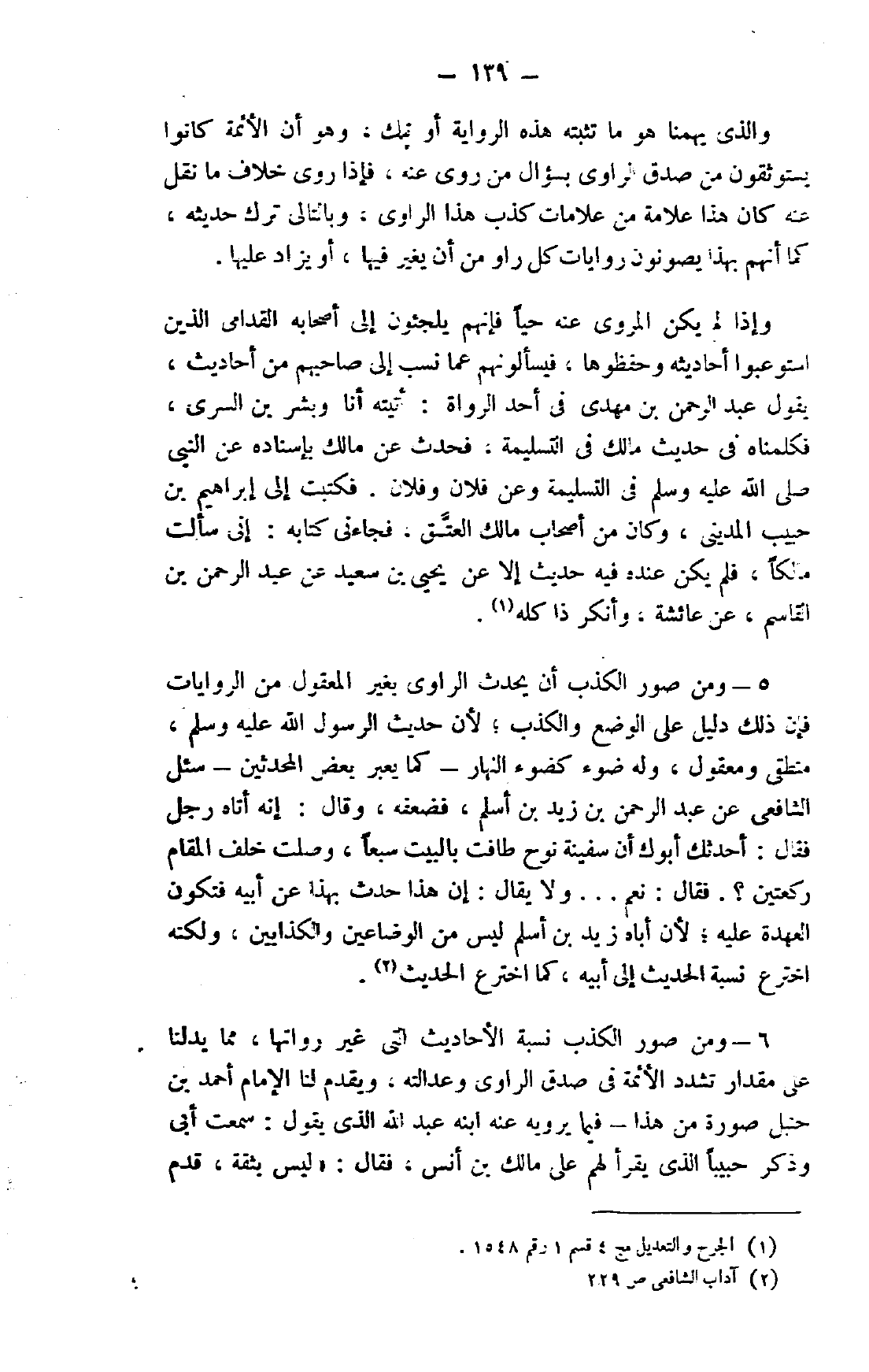 6- ومن صور الكذب نسبة الأحاديث التي غير رواتها، مما يدلنا على مقدار تشدد الأئمة في صدق الراوي وعدالته، ويقدم لنا الإمام أحمد بن حنبل صورة من هذا -فيما يرويه عنه ابنه عبد الله الذي يقول: سمعت أبي وذكر حبيبًا الذي يقرأ لهم على مالك بن أنس، فقال: "ليس بثقة، قدم