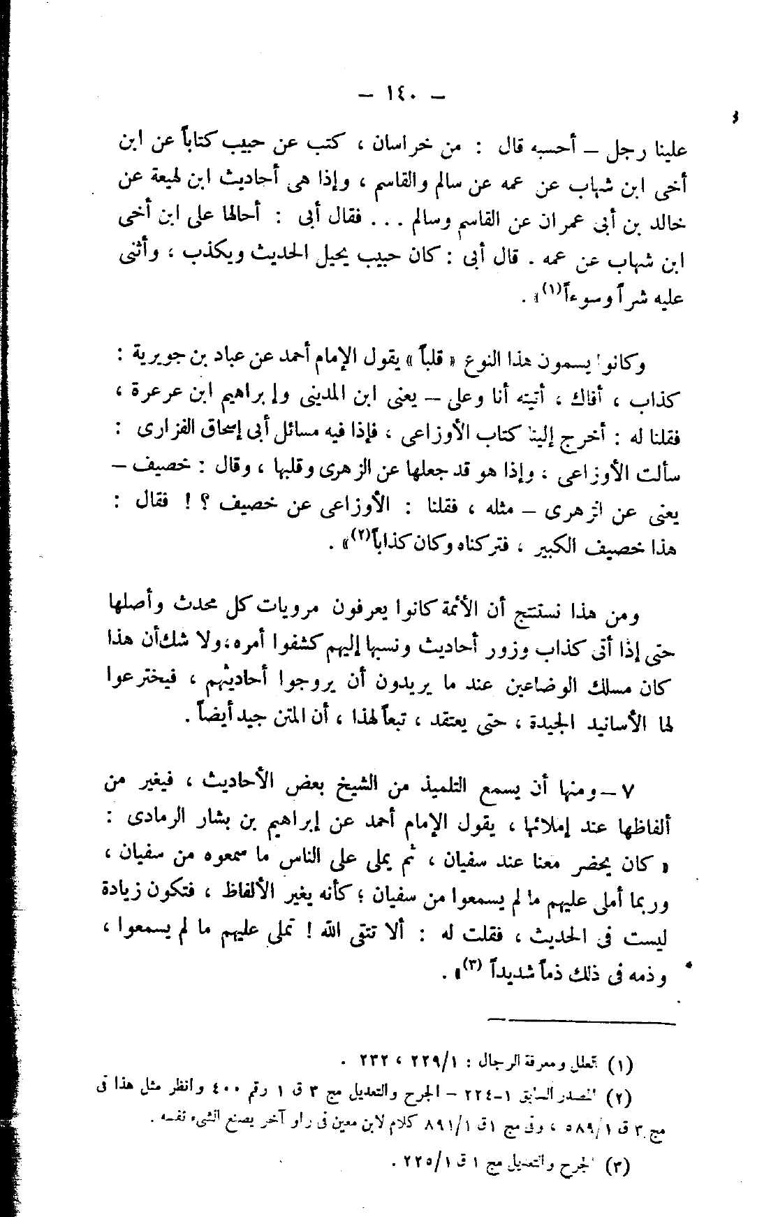 2 المصدر السابق 1- 224 - الجرح والتعديل مج3 ق1 رقم 400 وانظر مثل هذا في مج3 ق1/ 589، وفي مج1 ق 1/ 891 كلام لابن معين في راو آخر يصنع الشيء نفسه.