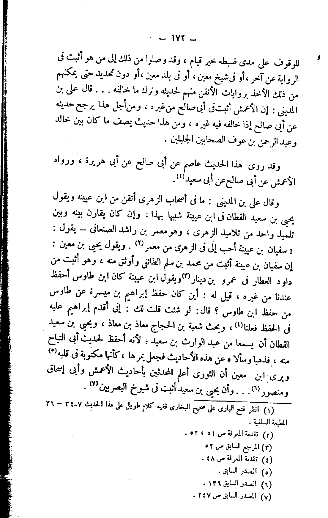 وقال علي بن المديني: ما في أصحاب الزهري أتقن من بن عيينة ويقول يحيى بن سعيد القطان في ابن عيينة شبيهًا بهذا، وإن كان يقارن بينه وبين تلميذ واحد من تلاميذ الزهري، وهو معمر بن راشد الصنعاني يقول: "سفيان بن عيينة أحب إلي في الزهري من معمر2. ويقول يحيى بن معين: "إن سفيان بن عيينة أثبت من محمد بن سلم الطائفي وأوثق منه، وهو أثبت من داود العطار في عمرو بن دينار3 ويقول ابن عيينة كان ابن طاوس أحفظ عندنا من غيره، قيل له: أين كان حفظ إبراهيم بن ميسرة عن طاوس من حفظ ابن طاوس؟ قال: لو شئت قلت لك: أين أقدم إبراهيم عليه في الحفظ فعلنا4، ويحث شعبة بن الحجاج معاذ بن معاذ، ويحيى بن سعيد القطان أن يسمعا من عبد الوارث بن سعيد؛ لأنه أحفظ لحديث أبي التياح منه، فذهبا وسألاه عن هذه الأحاديث فجعل يمرها، كأنها مكتوبة في قلبه5 ويرى ابن معين أن الثوري أعلم المحدثين بأحاديث الأعمش وأبي إسحاق ومنصور6 ... وأن يحيى بن سعيد أثبت في شيوخ البصريين7.