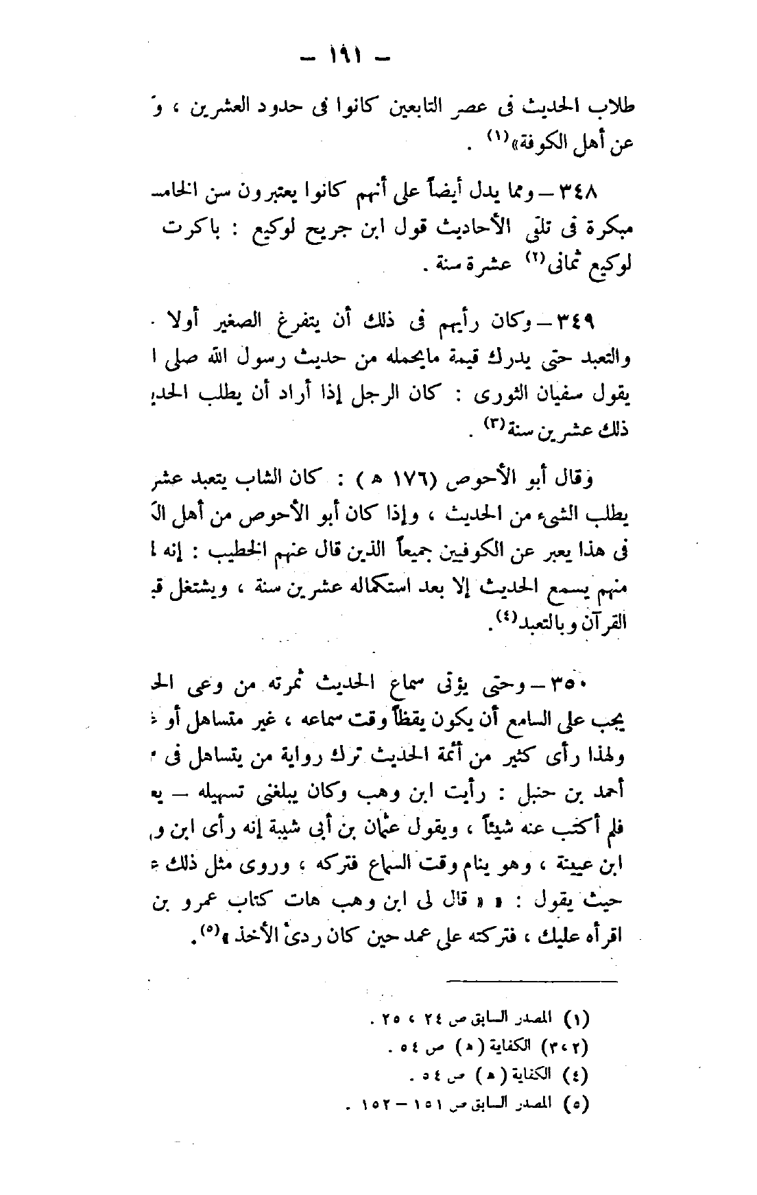 348- ومما يدل أيضًا على أنهم كانوا يعتبرون سن الخامسة عشرة سنًّا مبكرة في تلقي الأحاديث قول ابن جريح لوكيع: باكرت العلم، وكان لوكيع ثماني2 عشرة سنة.
