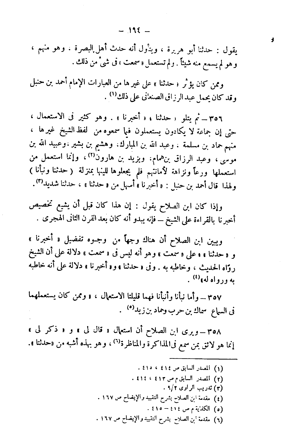 357- وأما نبأنا وأنبأنا فهما قليلتا الاستعمال، "وممن كان يستعملهما في السماع سماك بن حرب وحماد بن زيد5.