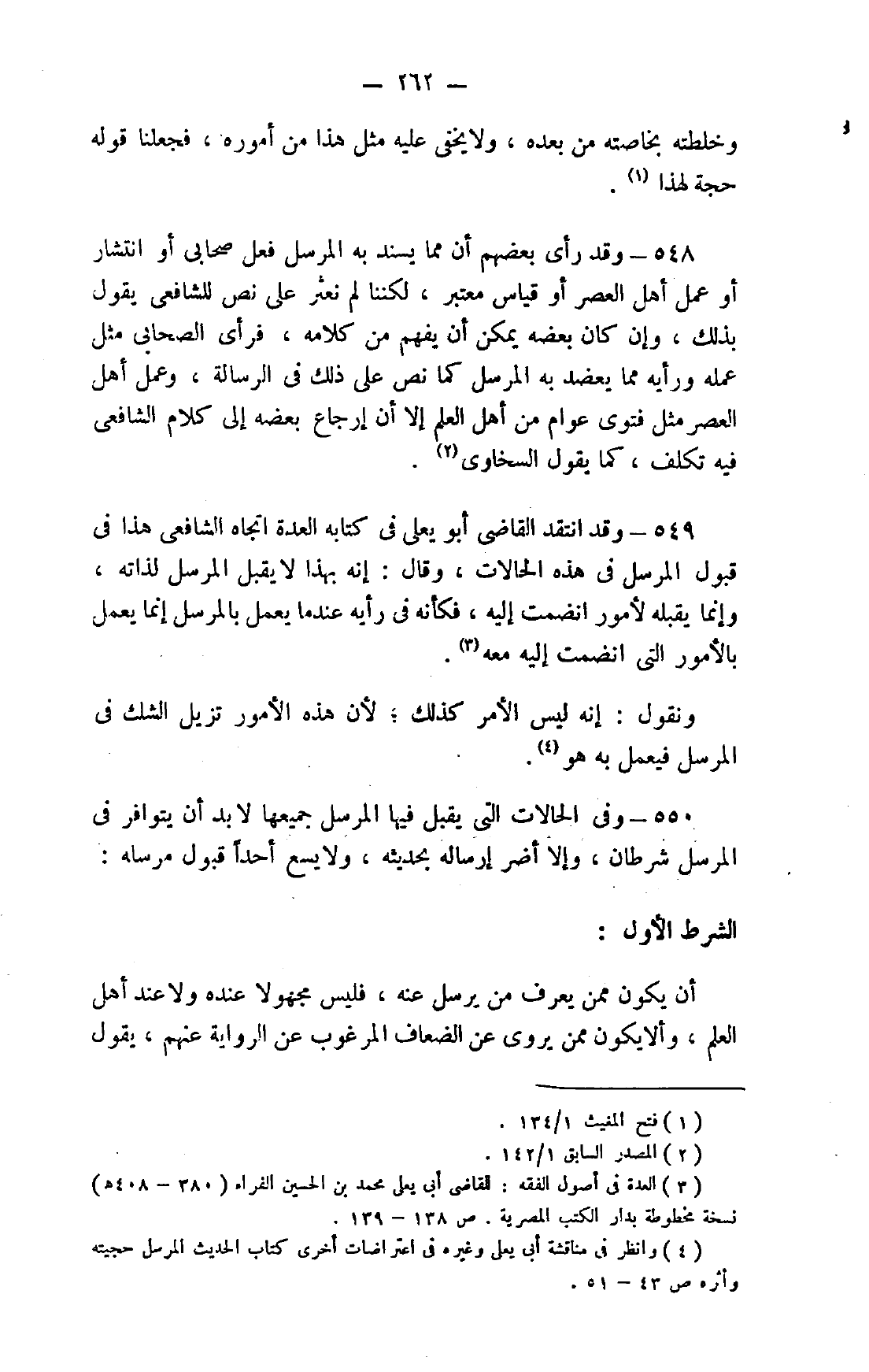 550- وفي الحالات التي يقبل فيها المرسل جميعًا لا بد أن يتوافر في المرسل شرطان، وإلا أضر إرساله بحديثه، ولا يسع أحدًا قبول مرسله: