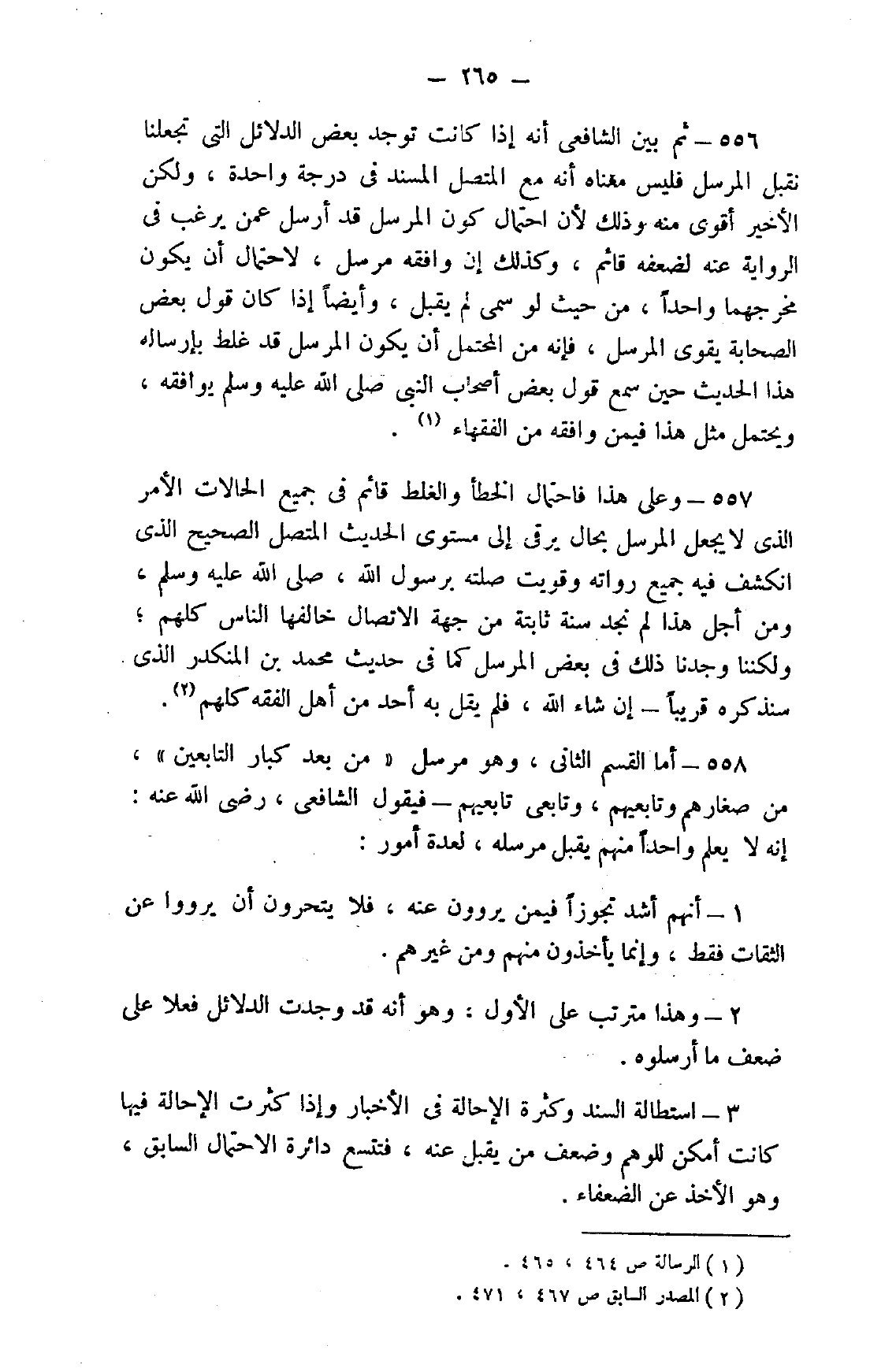 558- أما القسم الثاني، وهو مرسل "من بعد كبار التابعين"، من صغارهم وتابعيهم، وتابعي التابعين -فيقول الشافعي، رضي الله عنه: إنه لا يعلم واحدًا منهم يقبل مرسله، لعدة أمور: