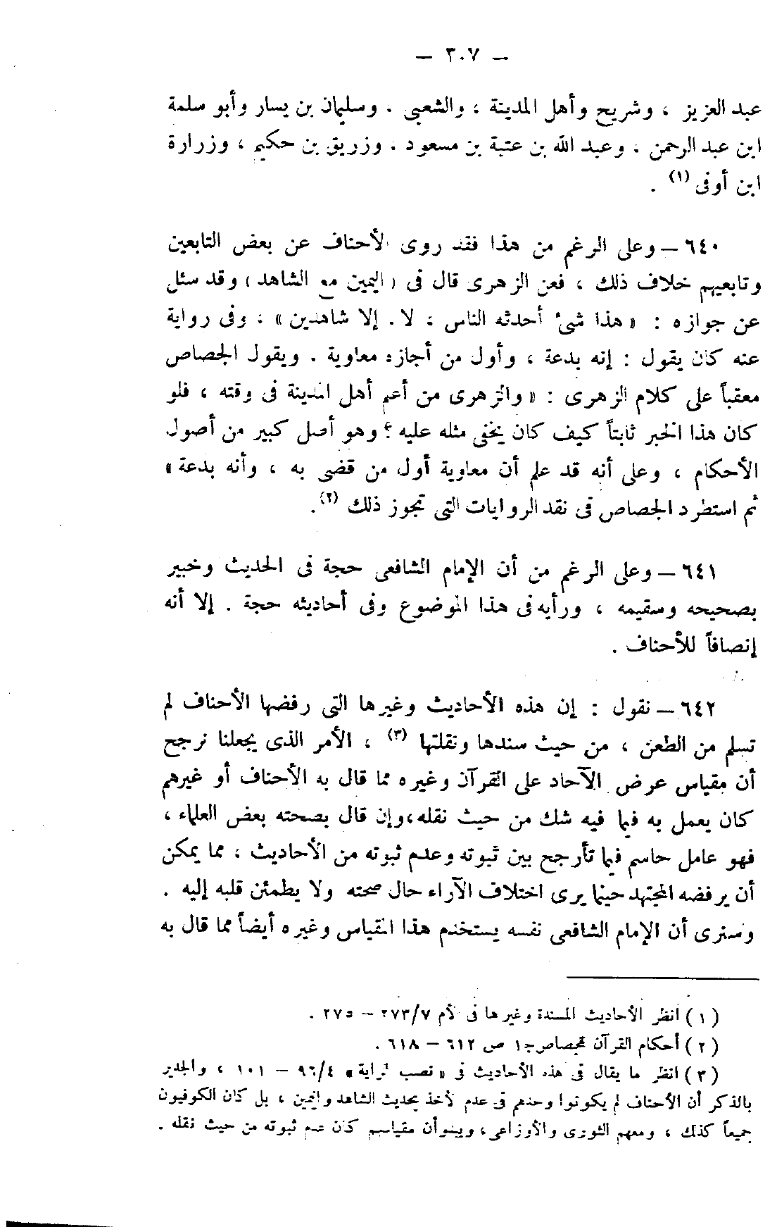 3 انظر ما يقال في هذه الأحاديث في "نصب الراية" 4/ 96 - 101، والجدير بالذكر أن الأحناف لم يكونوا وحدهم في عدم الأخذ بحديث الشاهد واليمين، بل كان الكوفيون جميعًا كذلك، ومعهم الثوري والأوزاعي، ويبدو أن مقياسهم كان عدم ثبوته من حيث نقله.