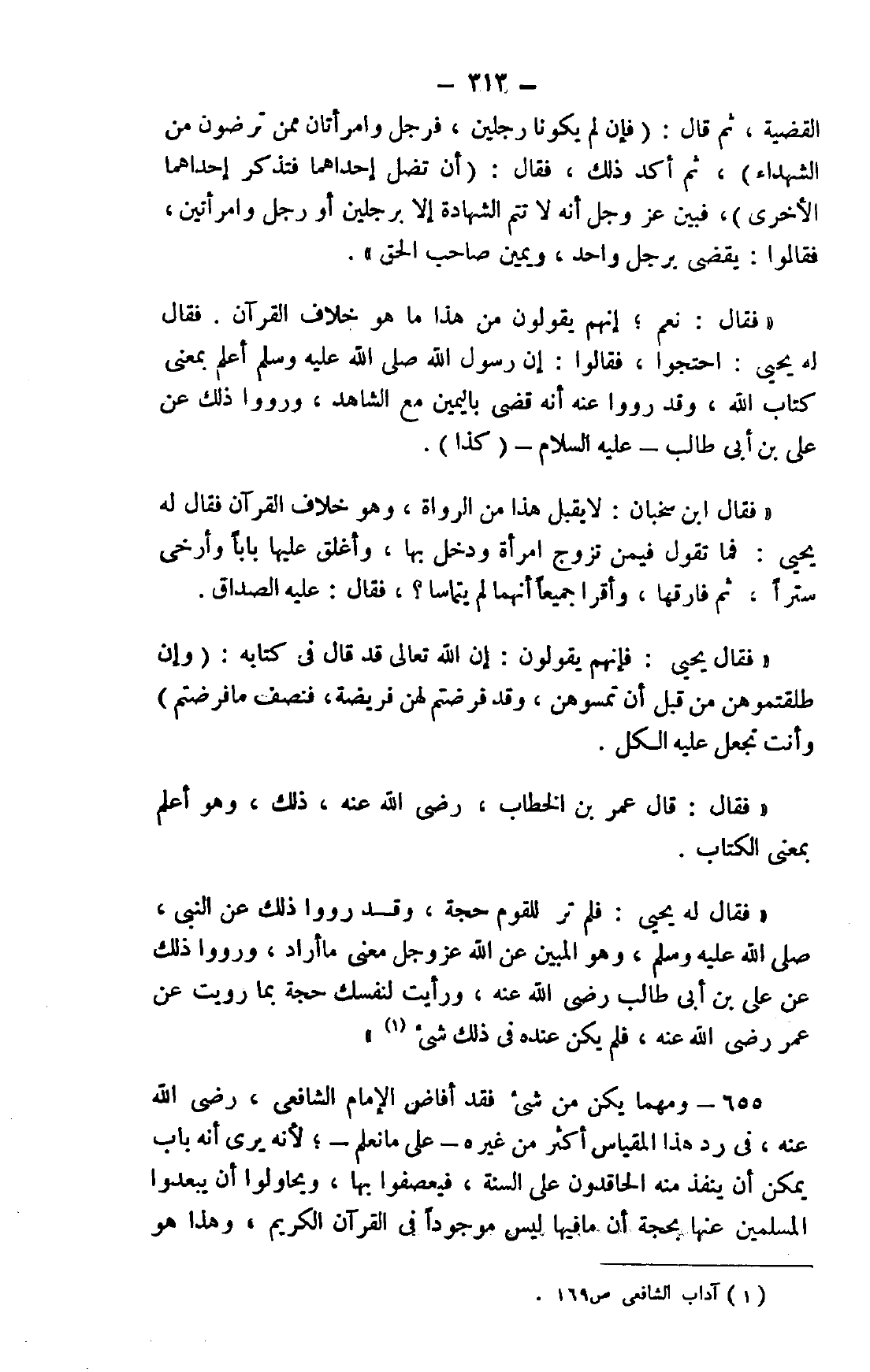"فقال: نعم؛ إنهم يقولون من هذا ما هو خلاف القرآن، فقال له يحيى: احتجوا، فقالوا: إن رسول الله صلى الله عليه وسلم أعلم بمعنى كتاب الله، وقد رووا عنه أنه قضى باليمين مع الشاهد، ورووا ذلك عن علي بن أبي طالب -عليه السلام- "كذا".