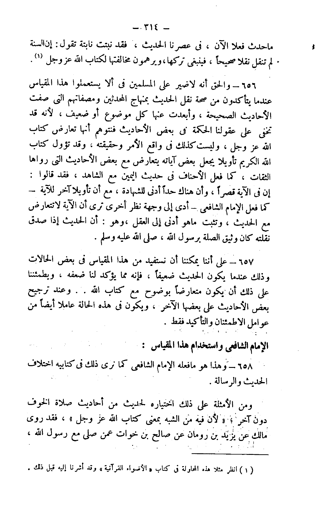 658- وهذا هو ما فعله الإمام الشافعي كما نرى ذلك في كتابيه اختلاف الحديث والرسالة.