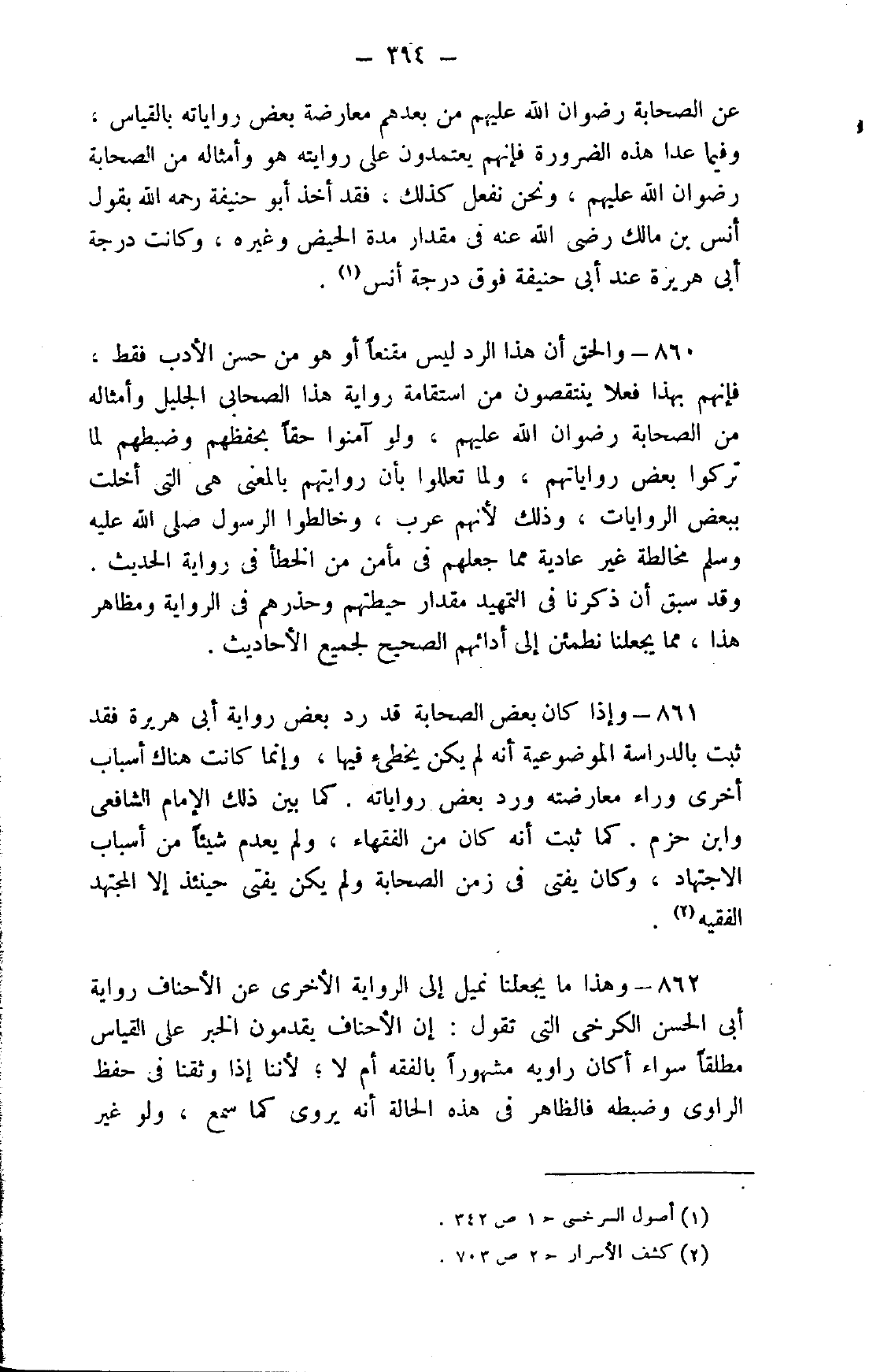 862- وهذا ما يجعلنا نميل إلى الرواية الأخرى عن الأحناف رواية أبي الحسن الكرخي التي تقول: إن الأحناف يقدمون الخبر على القياس مطلقًا سواء أكان راويه مشهورًا بالفقه أم لا؛ لأننا إذا وثقنا في حفظ الراوي وضبطه فالظاهر في هذه الحالة أنه يروي كما سمع، ولو غير