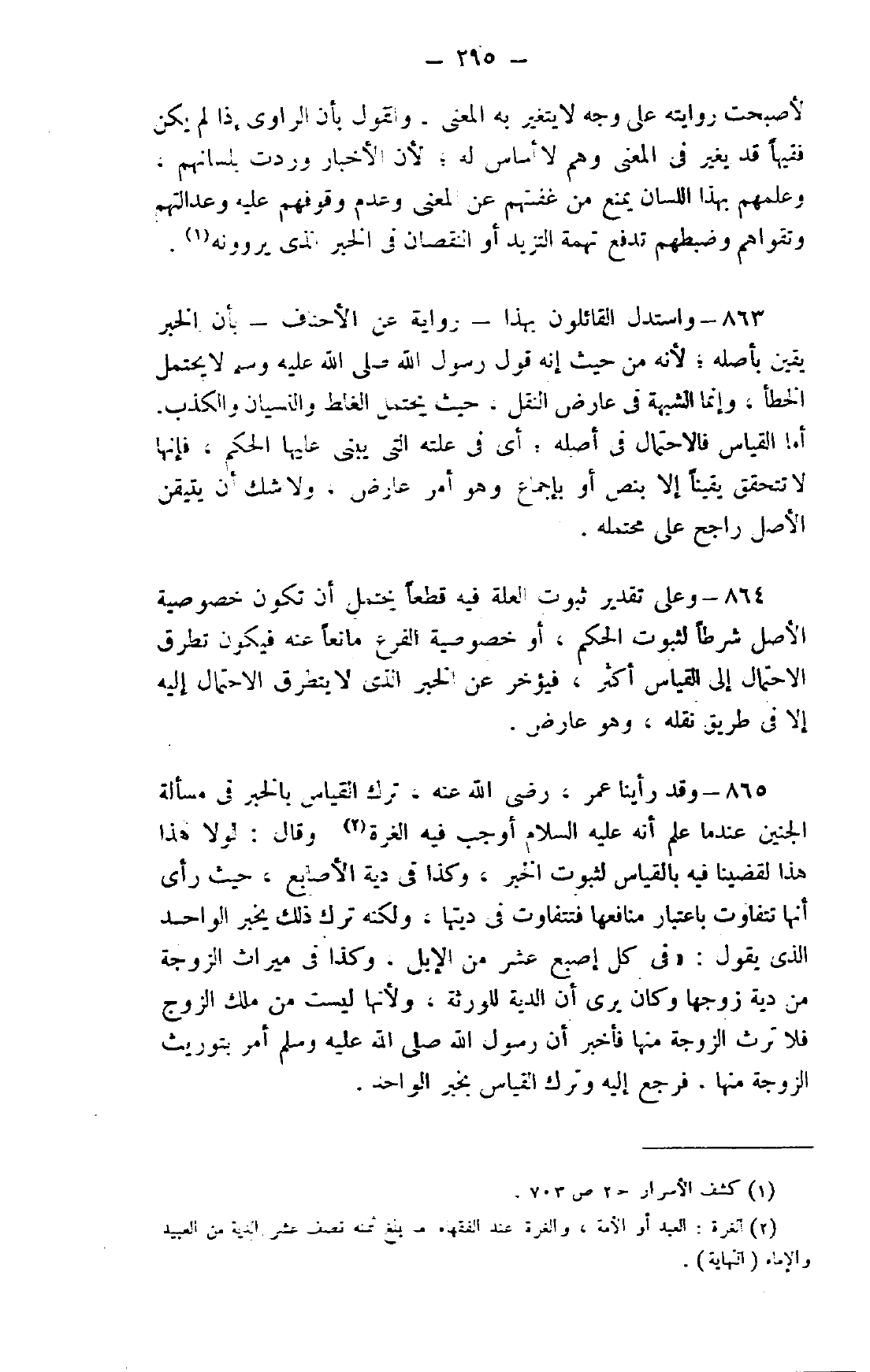 863- واستدل القائلون بهذا -رواية عن الأحناف- بأن الخبر يقين بأصله؛ لأنه من حيث إنه قول رسول الله صلى الله عليه وسلم لا يحتمل الخطأ، وإنما الشبهة في عارض النقل، حيث يحتمل الغلط والنسيان والكذب. أما القياس فالاحتمال في أصله؛ أي: في علته التي يبني عليها الحكم، فإنها لا تتحقق يقينًا إلا بنص أو بإجماع وهو أمر عارض. ولا شك أن يتيقن الأصل راجع على محتمله.