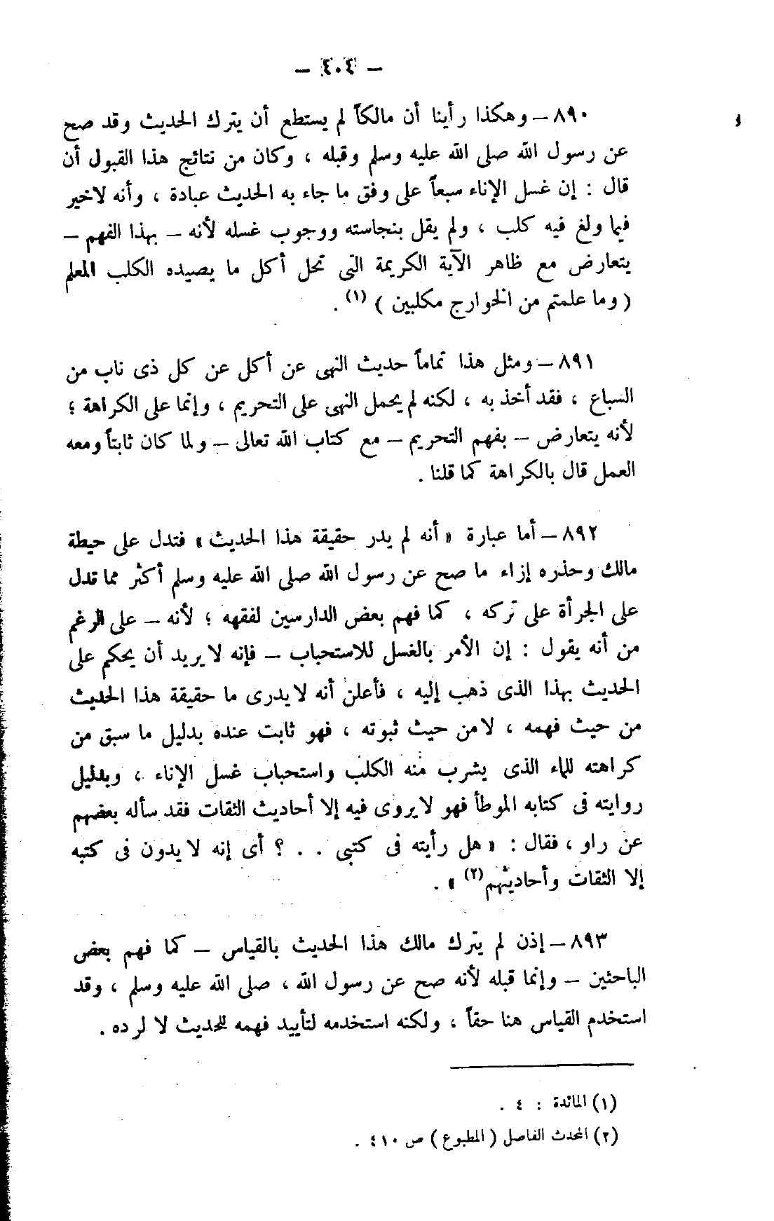 893- إذن لم يترك مالك هذا الحديث بالقياس -كما فهم بعض الباحثين- وإنما قبله لأنه صح عن رسول الله، صلى الله عليه وسلم، وقد استخدم القياس هنا حقًّا، ولكنه استخدمه لتأييد فهمه للحديث لا لرده.