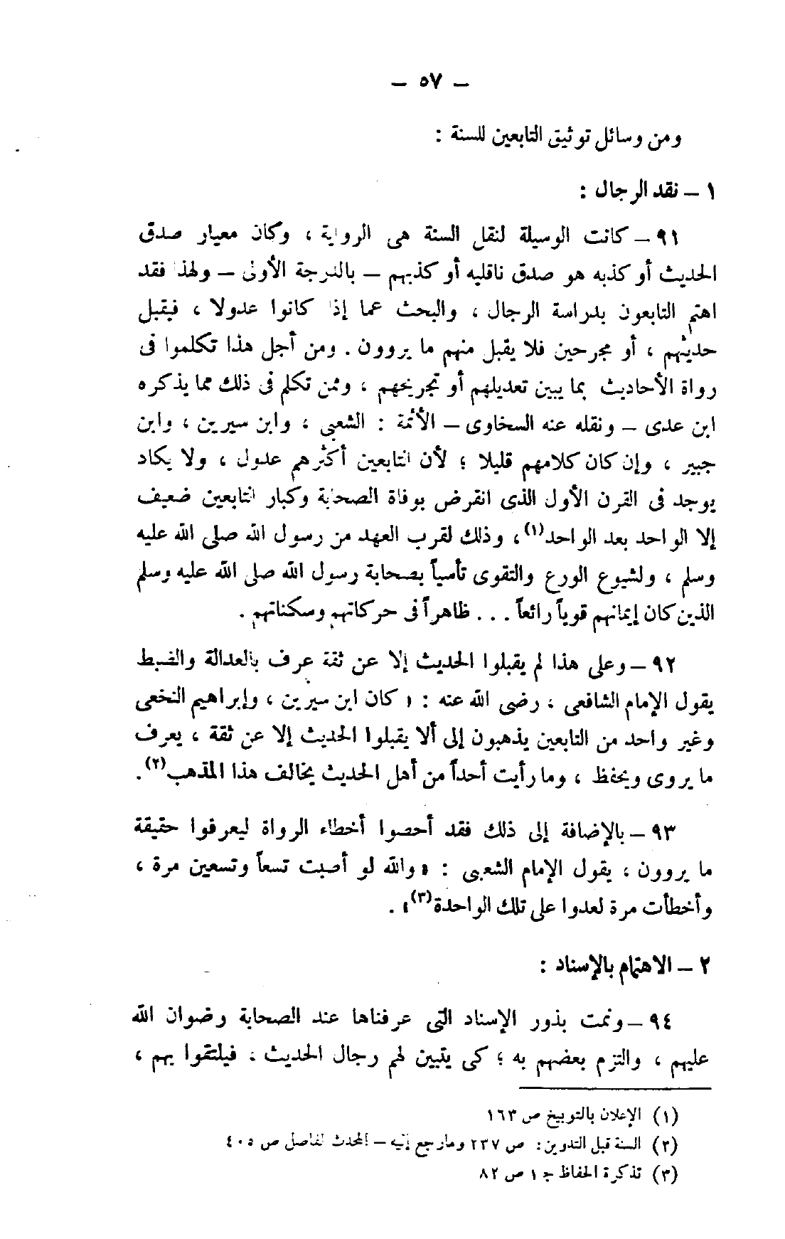 93- بالإضافة إلى ذلك فقد أحصوا أخطاء الرواة ليعرفوا حقيقة ما يروون، يقول الإمام الشعبي: "والله لو أصبت تسعًا وتسعين مرة، وأخطأت مرة لعدوا على تلك الواحدة3".