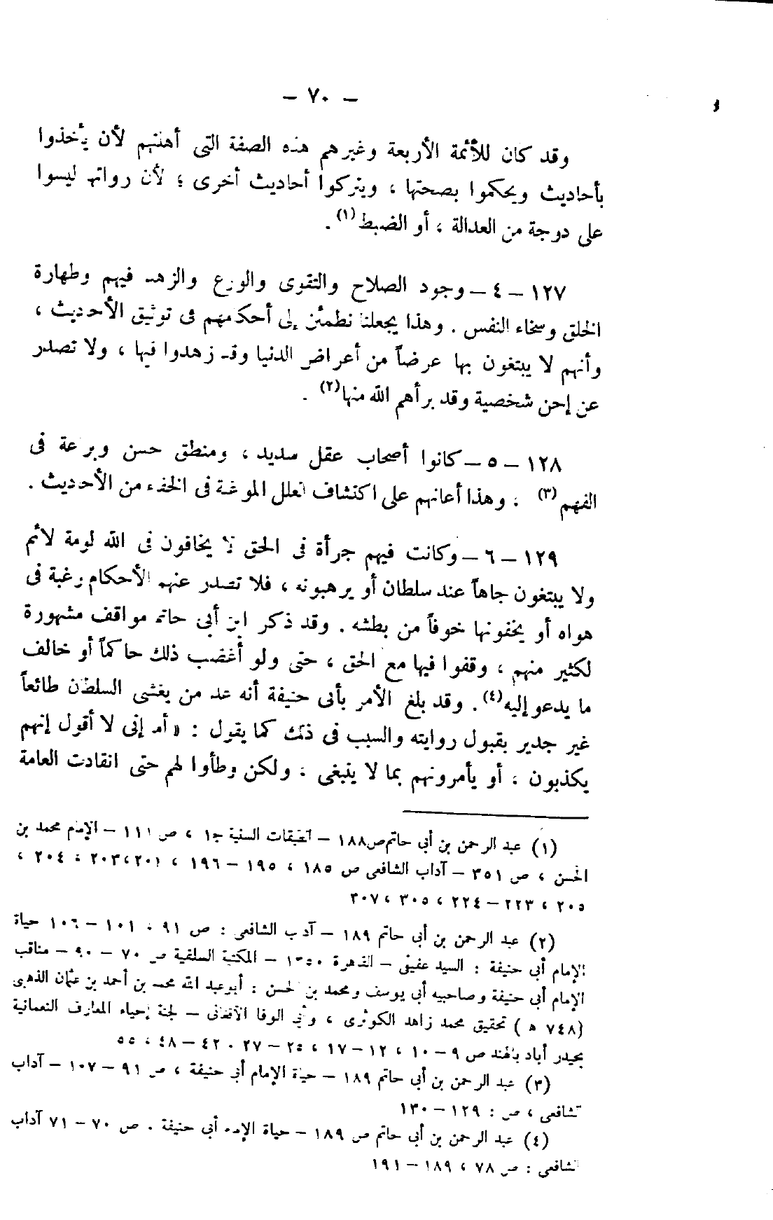 4 عبد الرحمن بن أبي حاتم ص189 - حياة الإمام أبي حنيفة، ص70 - 71 آداب الشافعي: ص78، 189 - 191.