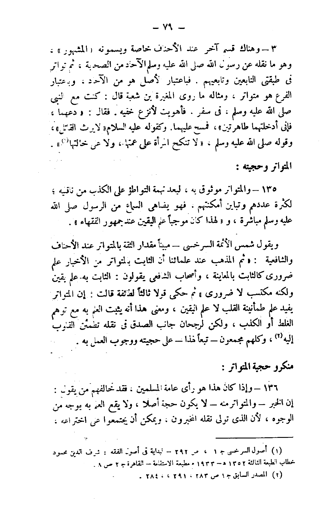 1 أصول السرخسي جـ1، ص292- البداية في أصول الفقه: شرف الدين محمود خطاب الطبعة الثالثة 1352هـ-1933م مطبعة الاستقامة -القاهرة جـ2 ص8.