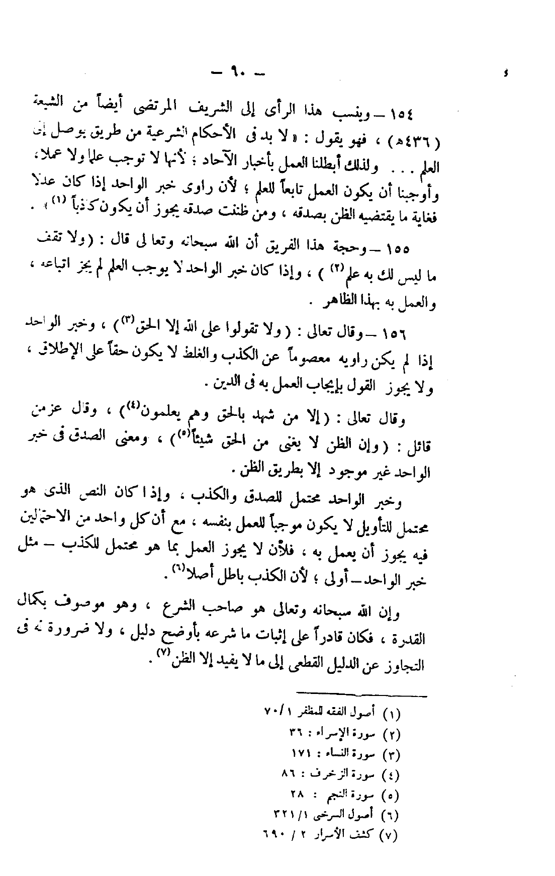 155- وحجة هذا الفريق أن الله سبحانه وتعالى قال: {وَلا تَقْفُ مَا لَيْسَ لَكَ بِهِ عِلْمٌ} 2، وإذا كان خبر الواحد لا يوجب العلم لم يجز اتباعه، والعمل به بهذا الظاهر.