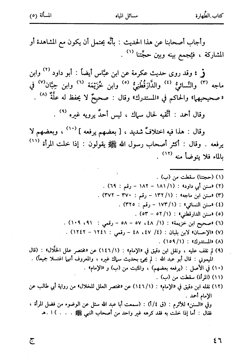 (12) نقله ابن دقيق في "الإمام": (1/ 146) عن "مختصر العلل للخلال" من رواية أبي طالب عن الإمام أحمد.