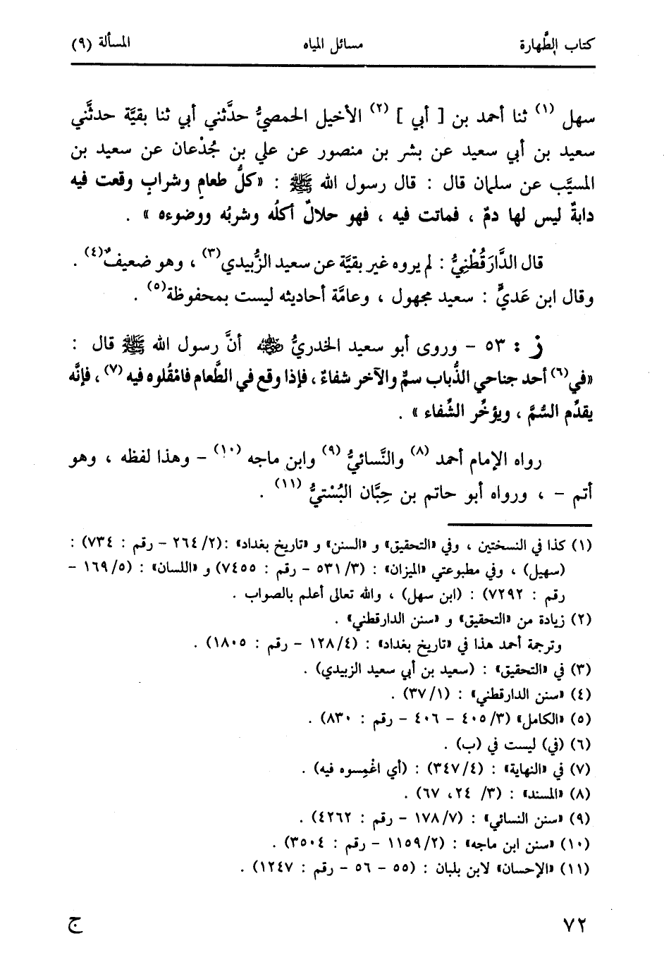 (1) كذا في النسختين، وفي "التحقيق" و"السنن" و"تاريخ بغداد": (2/ 264 - رقم: 734): (سهيل)، وفي مطبوعتي "الميزان": (3/ 531 - رقم: 7455) و"اللسان": (5/ 169 - رقم: 7292): (ابن سهل)، والله تعالى أعلم بالصواب.