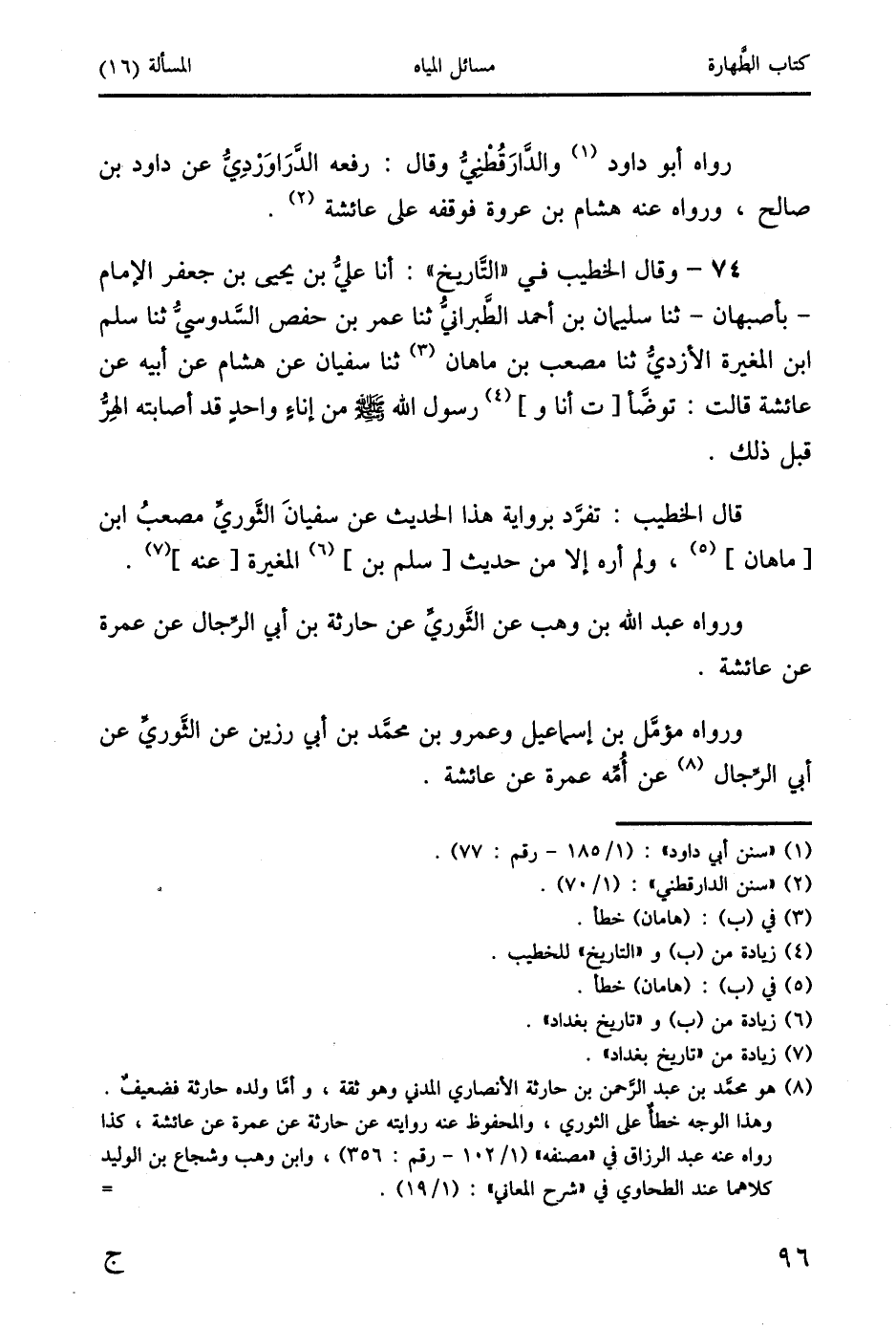 ورواه مؤمَّل بن إسماعيل وعمرو بن محمَّد بن أبي رزين عن الثَّوري عن أبي الرِّجال (8) عن أُمه عمرة عن عائشة.