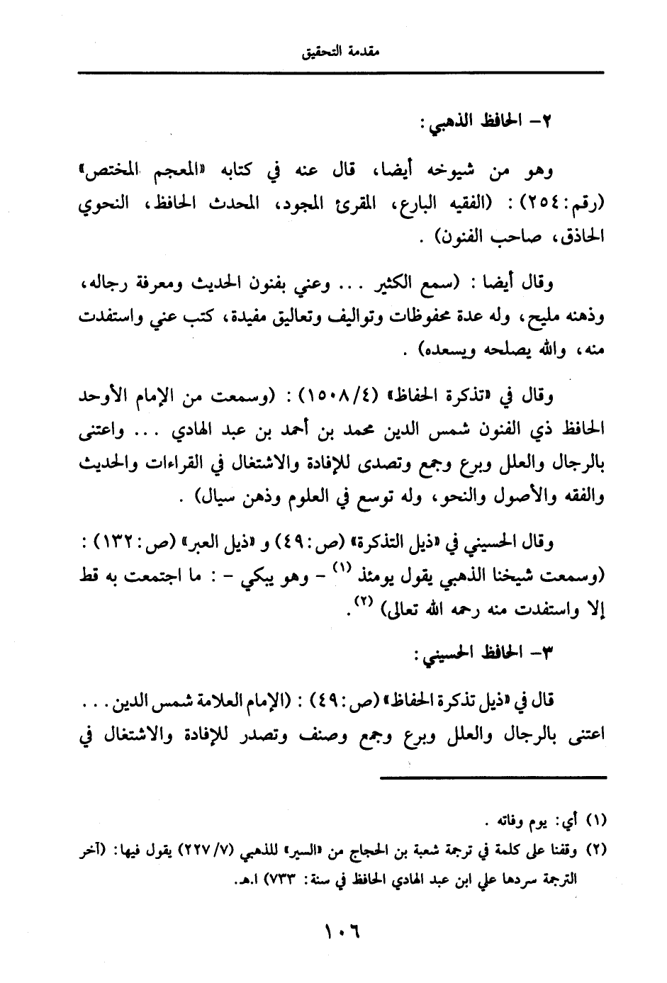 (2) وقفنا على كلمة في ترجمة شعبة بن الحجاج من " السير " للذهبي (7/ 227) يقول فيها: (آخر الترجمة سردها علي ابن عبد الهادي الحافظ في سنة: 733) ا. هـ.