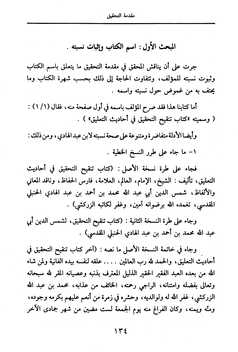 كتاب تنقيح التحقيق لابن عبد الهادي (اسم الجزء: المقدمة)