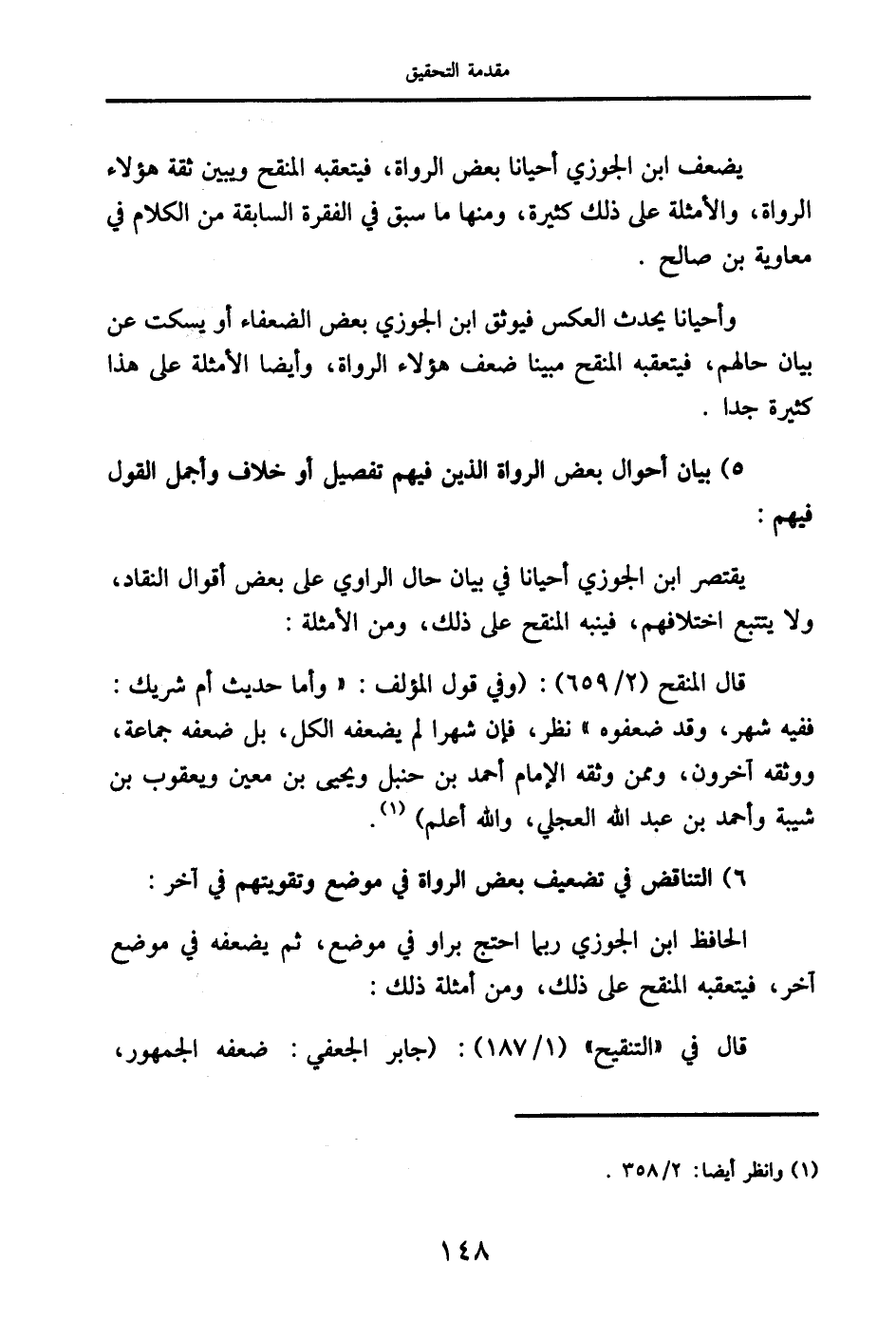 وأحيانًا يحدث العكس فيوثق ابن الجوزي بعض الضعفاء أو يسكت عن بيان حالهم، فيتعقبه المنقح مبينًا ضعف هؤلاء الرواة، وأيضًا الأمثلة على هذا كثيرة جدًا.