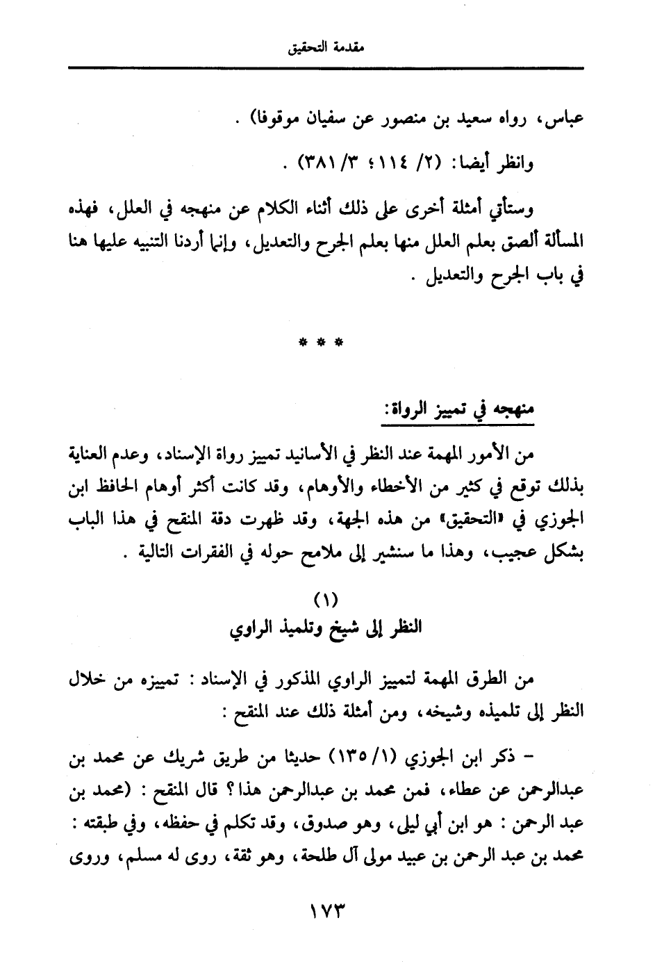 من الطرق المهمة لتمييز الراوي المذكور في الإسناد: تمييزه من خلال النظر إلى تلميذه وشيخه، ومن أمثلة ذلك عند المنقح:
