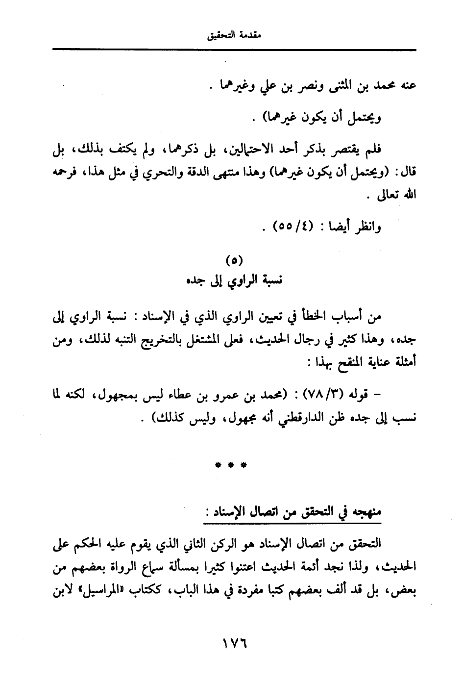 من أسباب الخطأ في تعيين الراوي الذي في الإسناد: نسبة الراوي إلى جده، وهذا كثير في رجال الحديث، فعلى المشتغل بالتخريج التنبه لذلك، ومن أمثلة عناية المنقح بهذا: