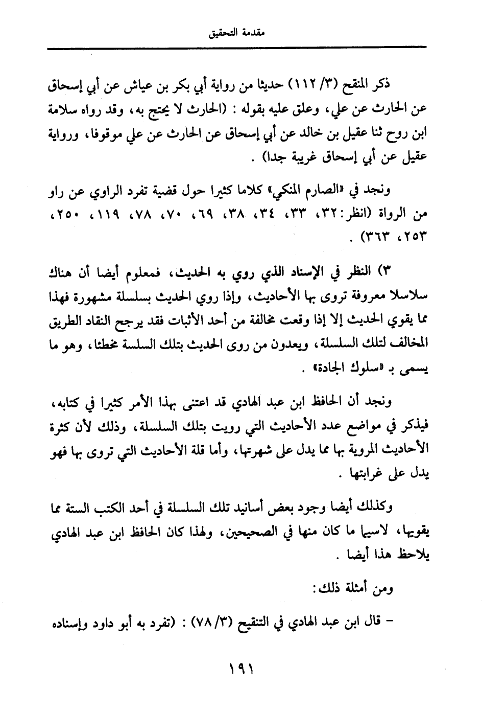 ذكر المنقح (3/ 112) حديثًا من رواية أبي بكر بن عياش عن أبي إسحاق عن الحارث عن علي، وعلق عليه بقوله: (الحارث لا يحتج به، وقد رواه سلامة ابن روح ثنا عقيل بن خالد عن أبي إسحاق عن الحارث عن علي موقوفًا، ورواية عقيل عن أبي إسحاق غريبة جدًا).