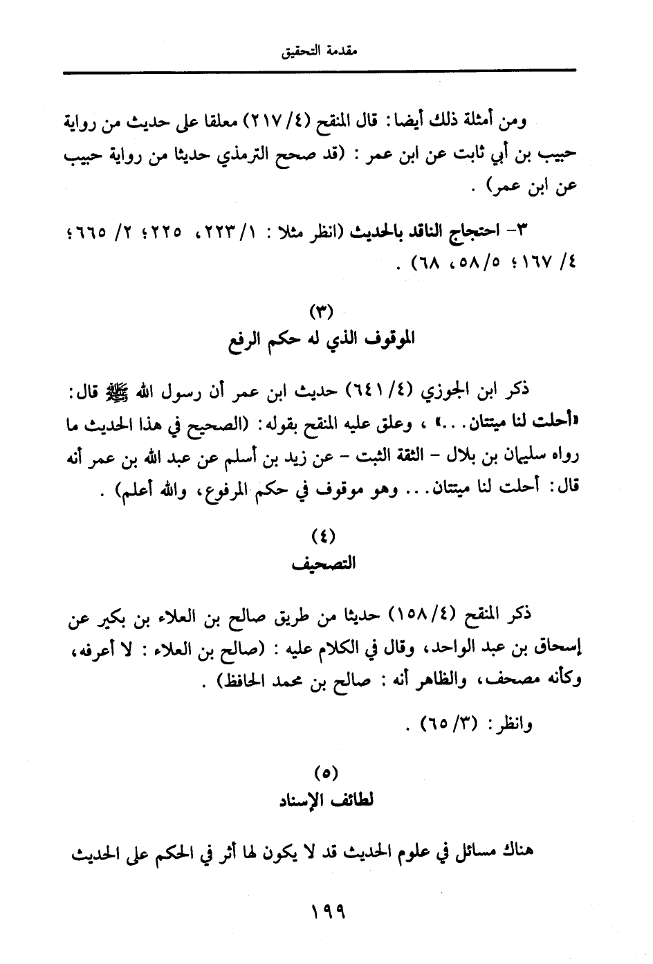 3 - احتجاج الناقد بالحديث (انظر مثلاً: 1/ 223، 225؛ 2/ 665؛ 4/ 167؛ 5/ 58، 68).