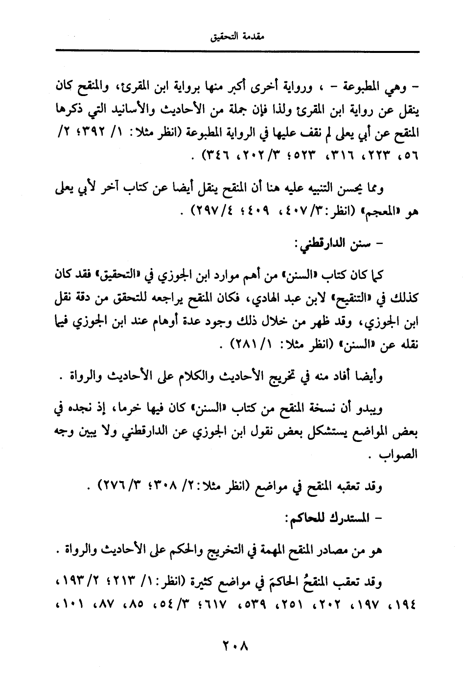 وقد تعقب المنقحُ الحاكمَ في مواضع كثيرة (انظر: 1/ 213؛ 2/ 193، 194، 197، 202، 251، 539، 617؛ 3/ 54، 85، 87، 101،