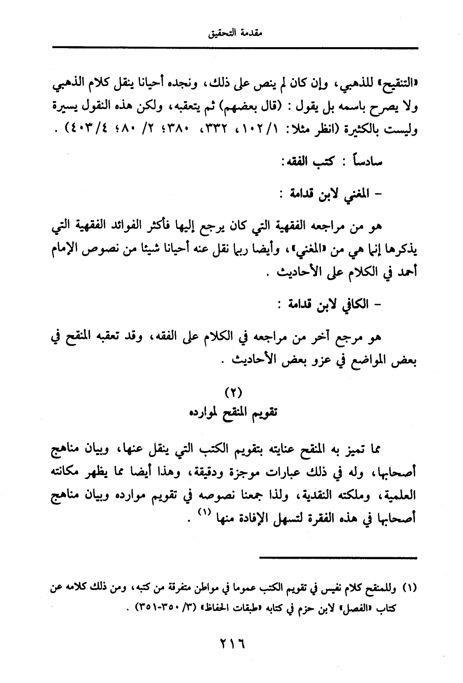 (1) وللمنقح كلام نفيس في تقويم الكتب عمومًا في مواطن متفرقة من كتبه، ومن ذلك كلامه عن كتاب " الفصل " لابن حزم في كتابه " طبقات الحفاظ " (3/ 350 - 351).