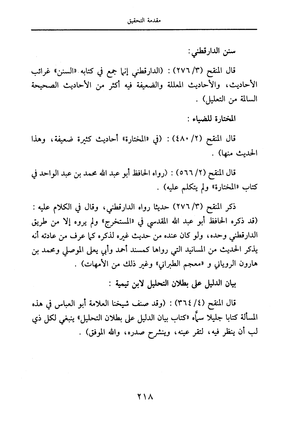 قال المنقح (4/ 364): (وقد صنف شيخنا العلامة أبو العباس في هذه المسألة كتابًا جليلاً سمَّاه " كتاب بيان الدليل على بطلان التحليل " ينبغي لكل ذي لب أن ينظر فيه، لتقر عينه، وينشرح صدره، والله الموفق).