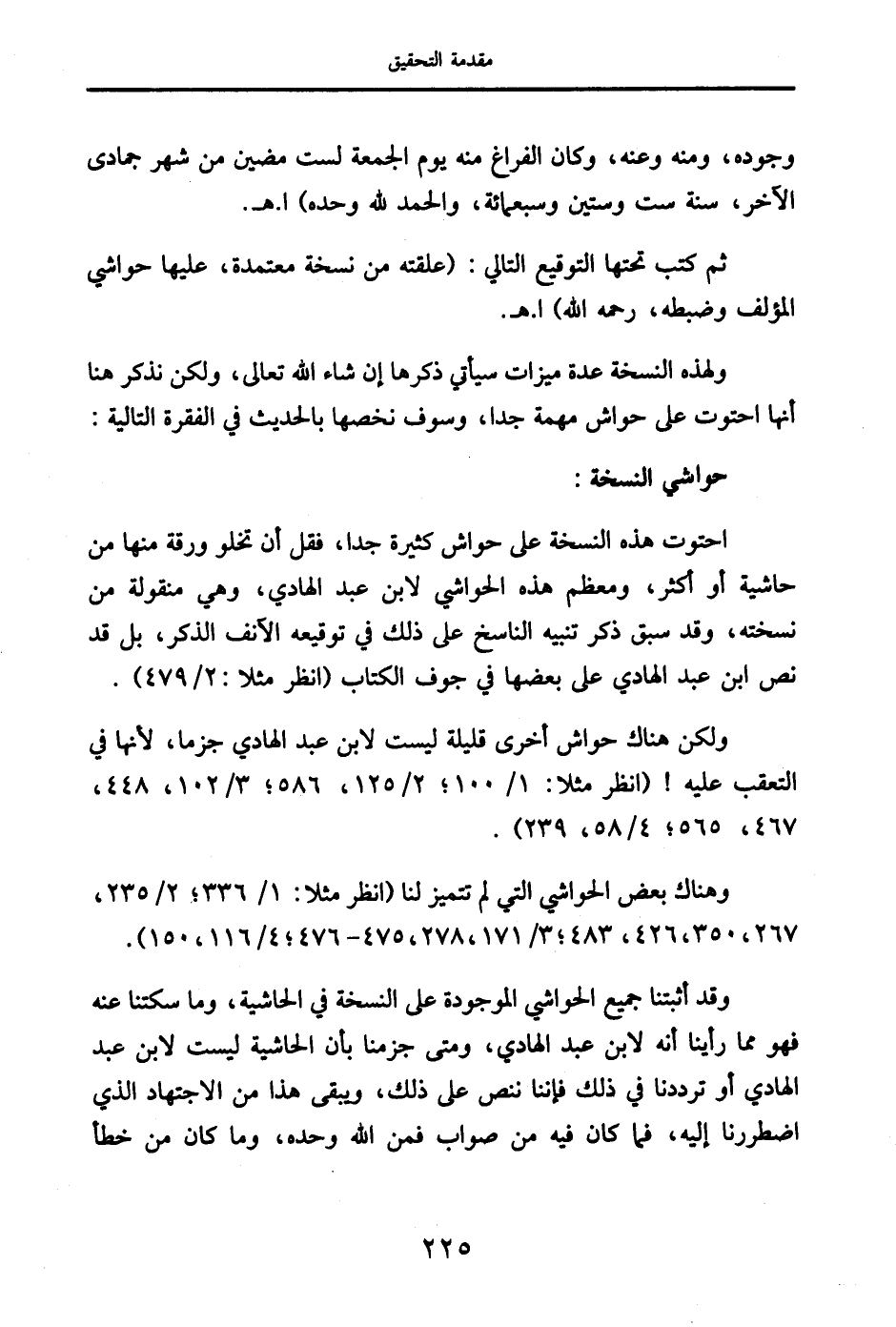 ولكن هناك حواش أخرى قليلة ليست لابن عبد الهادي جزمًا، لأنها في التعقب عليه! (انظر مثلاً: 1/ 100؛ 2/ 125، 586؛ 3/ 102، 448، 467، 565؛ 4/ 58، 239).