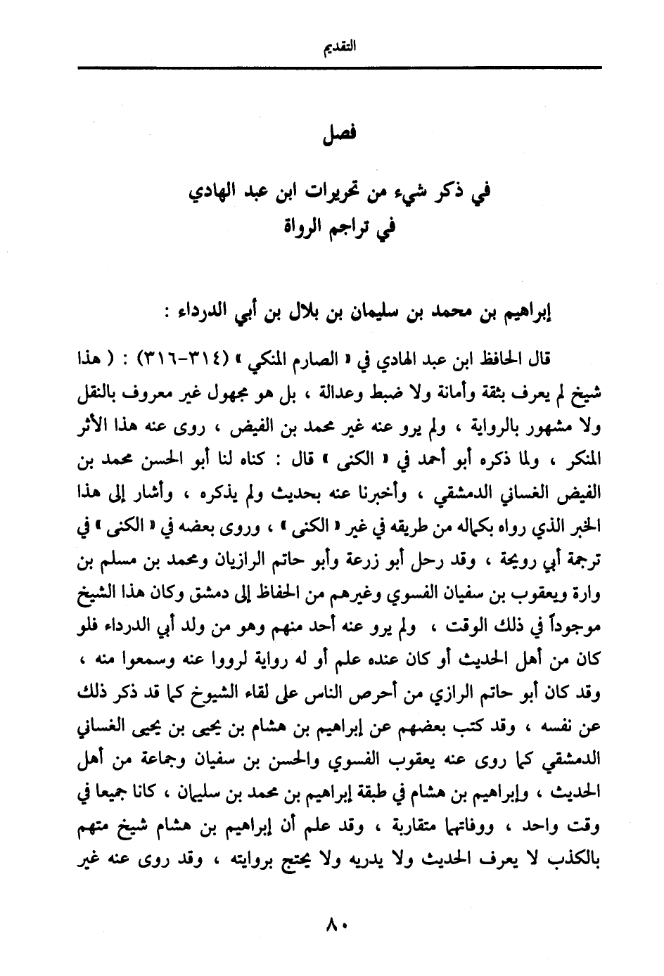 فصل: في ذكر شيء من تحريرات ابن عبد الهادي في تراجم الرواة إبراهيم بن محمد بن سليمان بن بلال بن أبي الدرداء: