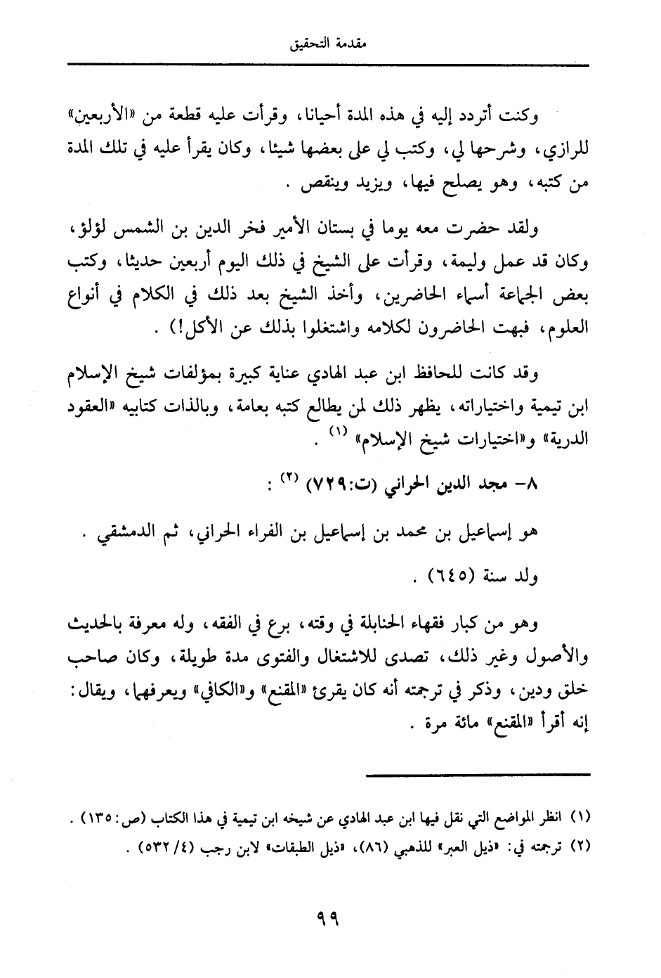(1) انظر المواضع التي نقل فيها ابن عبد الهادي عن شيخه ابن تيمية في هذا الكتاب (ص: 135).