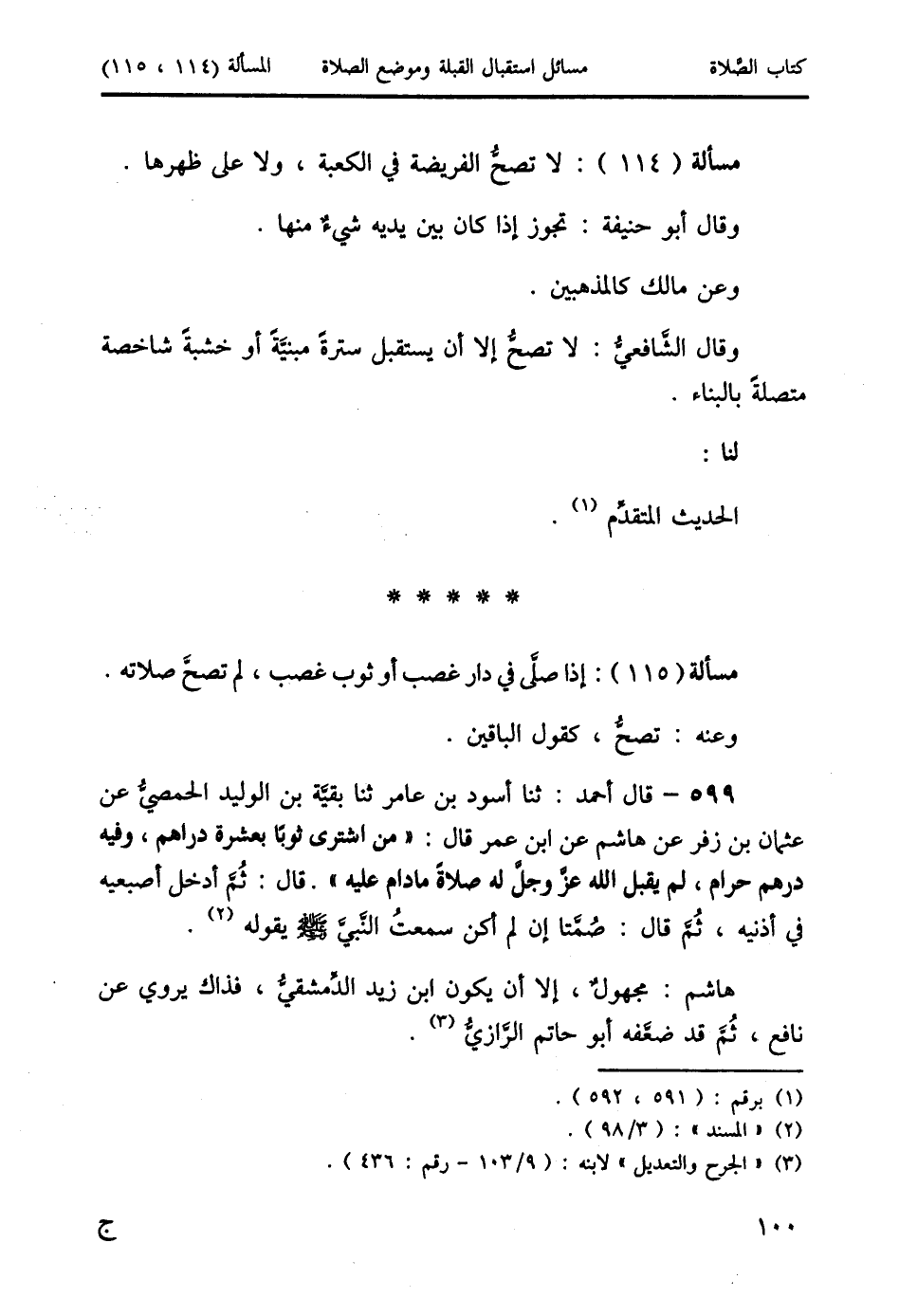 599 - قال أحمد: ثنا أسود بن عامر ثنا بقيَّة بن الوليد الحمصيُّ عن عثمان بن زفر عن هاشم عن ابن عمر قال: " من اشترى ثوبًا بعشرة دراهم، وفيه درهم حرام، لم يقبل الله عزَّ وجلَّ له صلاةً مادام عليه ". قال: ثُمَّ أدخل أصبعيه في أذنيه، ثُمَّ قال: صُمَّتا إن لم أكن سمعتُ النَّبيَّ صَلَّى اللَّهُ عَلَيْهِ وَسَلَّمَ يقوله (2).
