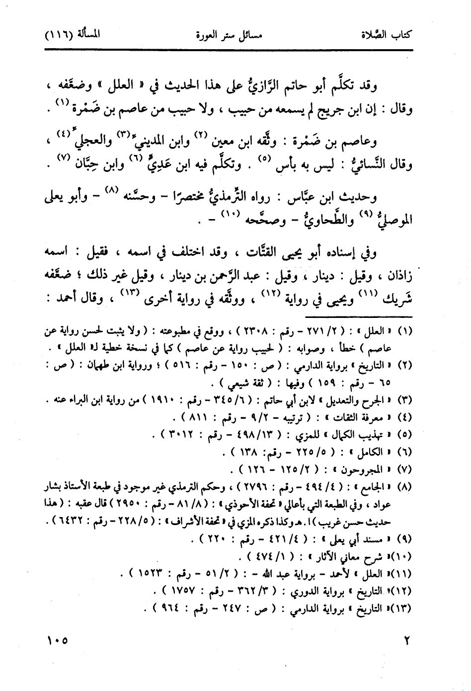 (1) "العلل": (2/ 271 - رقم: 2308)، ووقع في مطبوعته: (ولا يثبت لحسن رواية عن عاصم) خطأ، وصوابه: (لحبيب رواية عن عاصم) كما في نسخة خطية لـ"العلل".