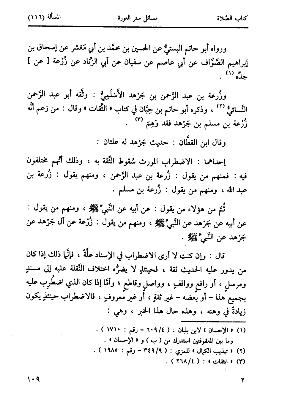 ثُمَّ من هؤلاء من يقول: عن أبيه عن النَّبيِّ صَلَّى اللَّهُ عَلَيْهِ وَسَلَّمَ، ومنهم من يقول: عن أبيه عن جَرْهد عن النَّبيِّ صَلَّى اللَّهُ عَلَيْهِ وَسَلَّمَ، ومنهم من يقول: زُرْعة عن آل جَرْهد عن جَرْهد عن النَّبيِّ صَلَّى اللَّهُ عَلَيْهِ وَسَلَّمَ.
