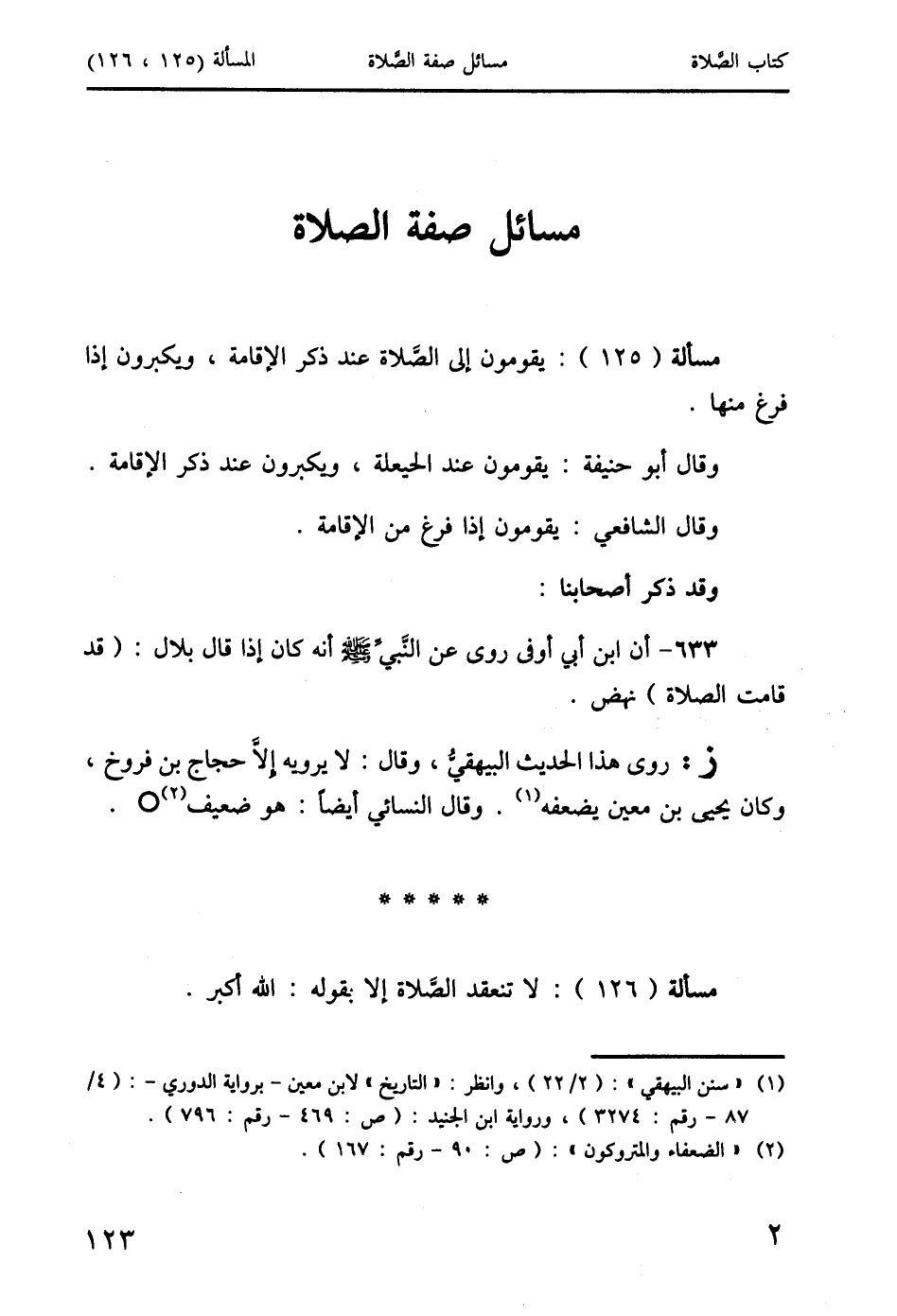 مسألة (126): لا تنعقد الصَّلاة إلا بقوله: الله أكبر.