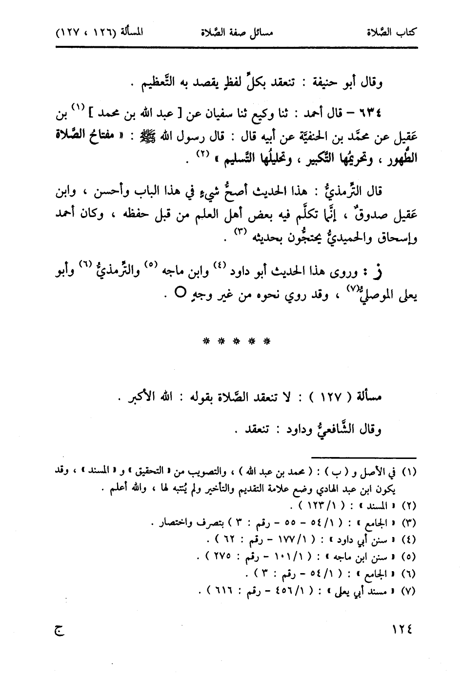 مسألة (127): لا تنعقد الصَّلاة بقوله: الله الأكبر.