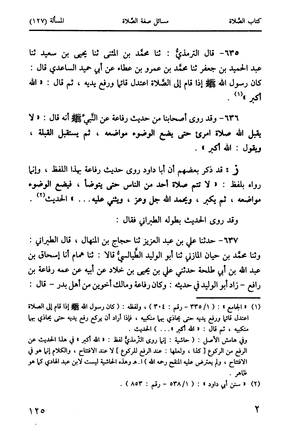 (1) "الجامع": (1/ 335 - رقم: 304)، ولفظه: (كان رسول الله صَلَّى اللَّهُ عَلَيْهِ وَسَلَّمَ إذا قام إلى الصلاة اعتدل قائمًا ورفع يديه حتى يحاذي بهما منكبيه، فإذا أراد أن يركع رفع يديه حتى يحاذي بهما منكبيه، ثم قال: " الله أكبر " ...) الحديث.